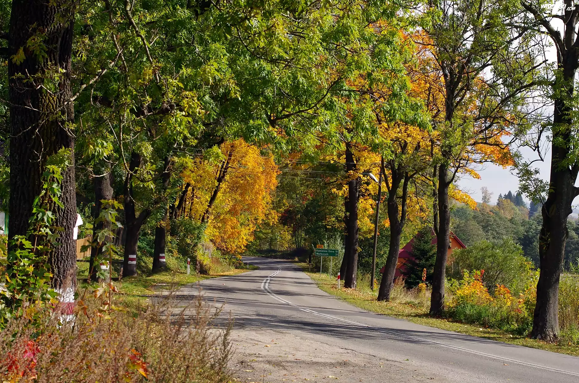 Zdjęcia, Dolny, Śląsk, Dom, Droga, Drzewa, Jesień