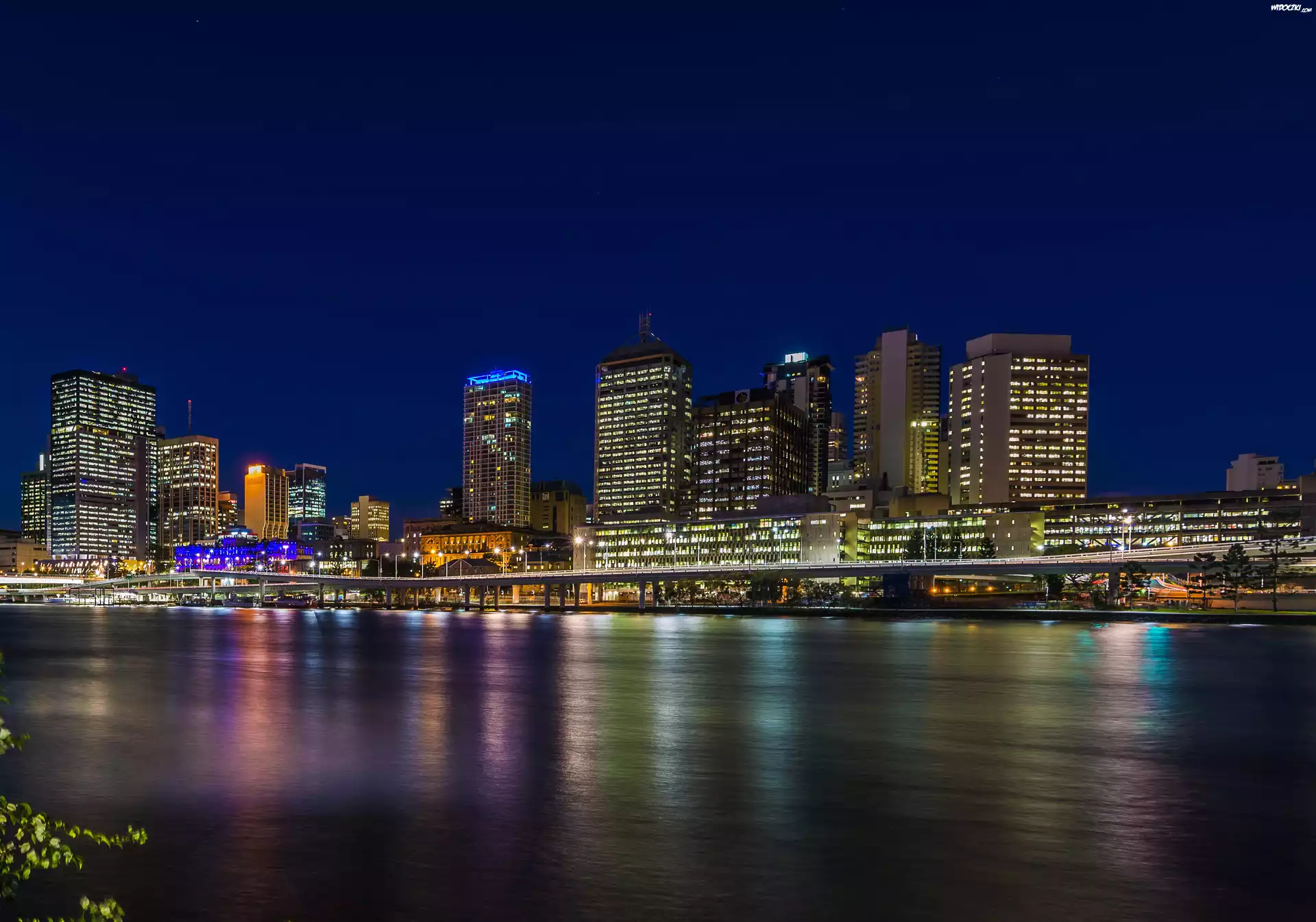 Zdjęcia, Dom, Noc, Brisbane, Australia, Rzeka