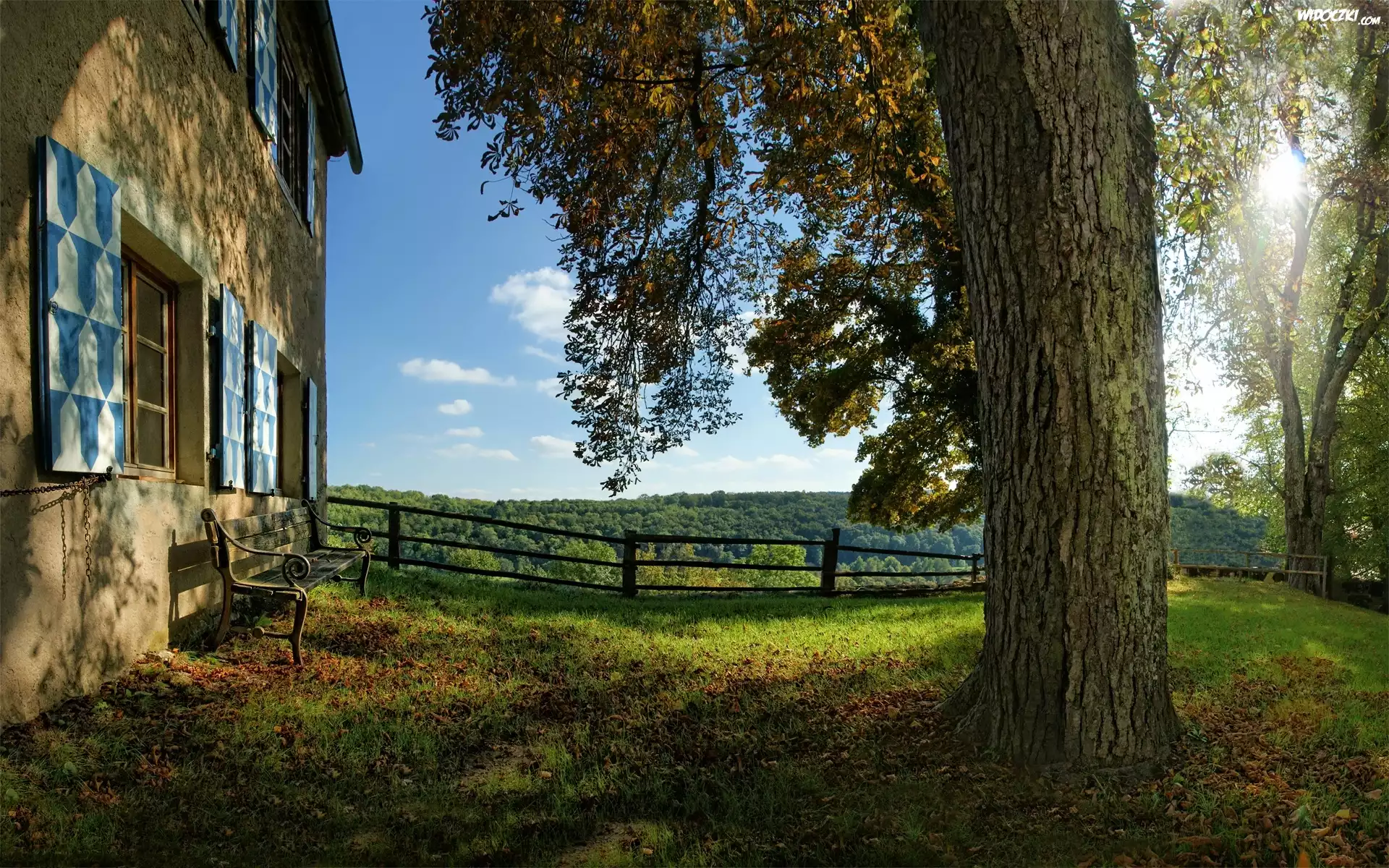 Zdjęcia, Dom, Drzewo, Ławeczka, Ogrodzenie