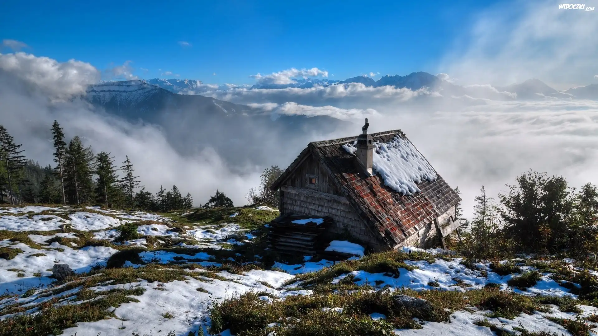 Dom, Góry, Lasy, Chmury, Zima