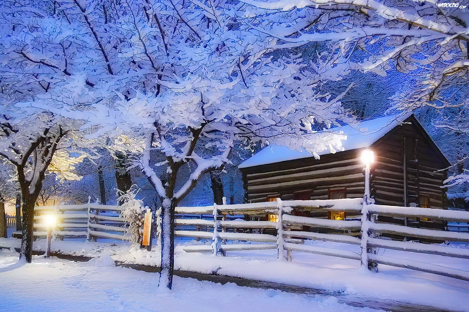 Zdjęcia, Dom, Płot, Drzewa, Zima