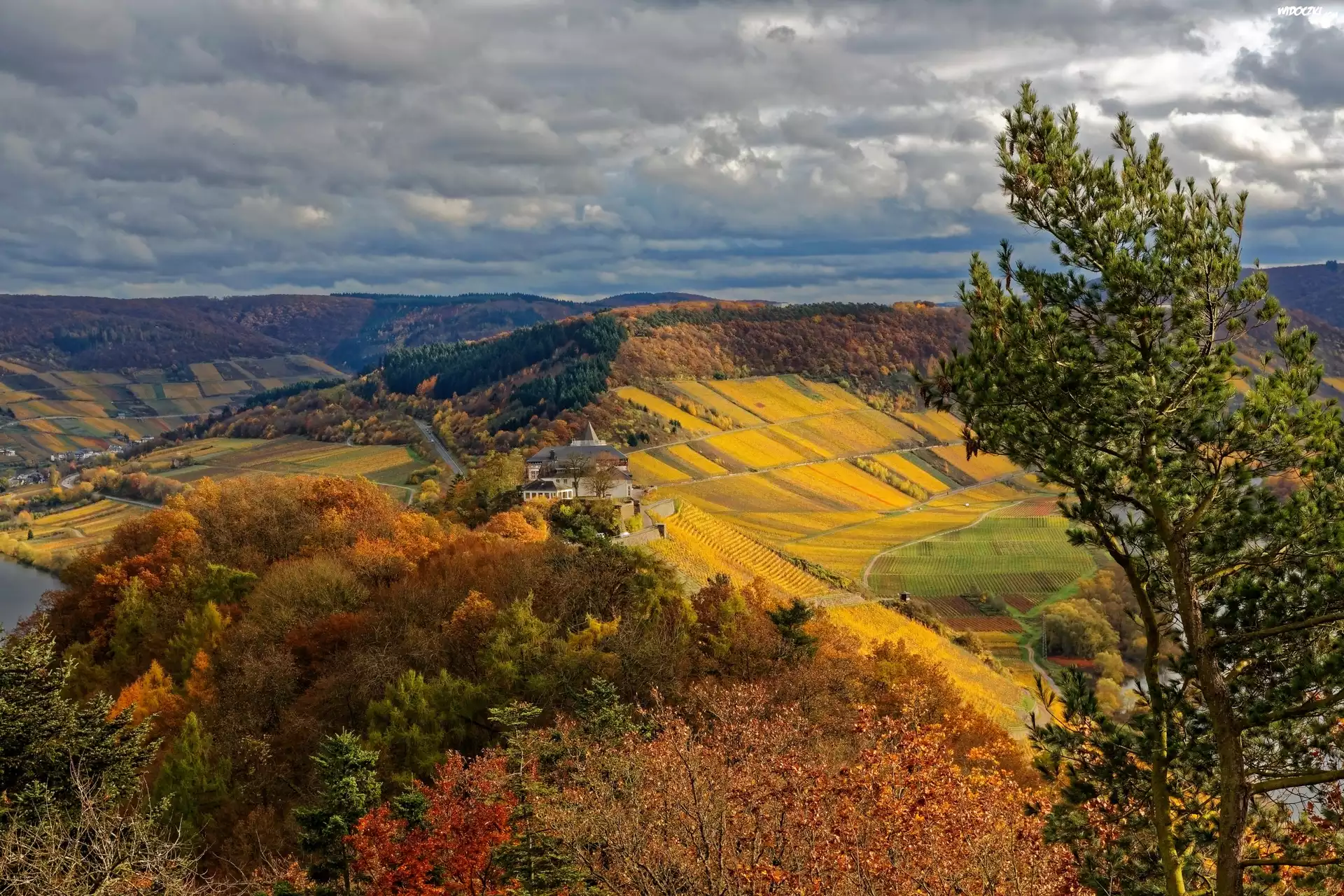 Zdjęcia, Dom, Na, Wzgórzu, Jesień, Pola