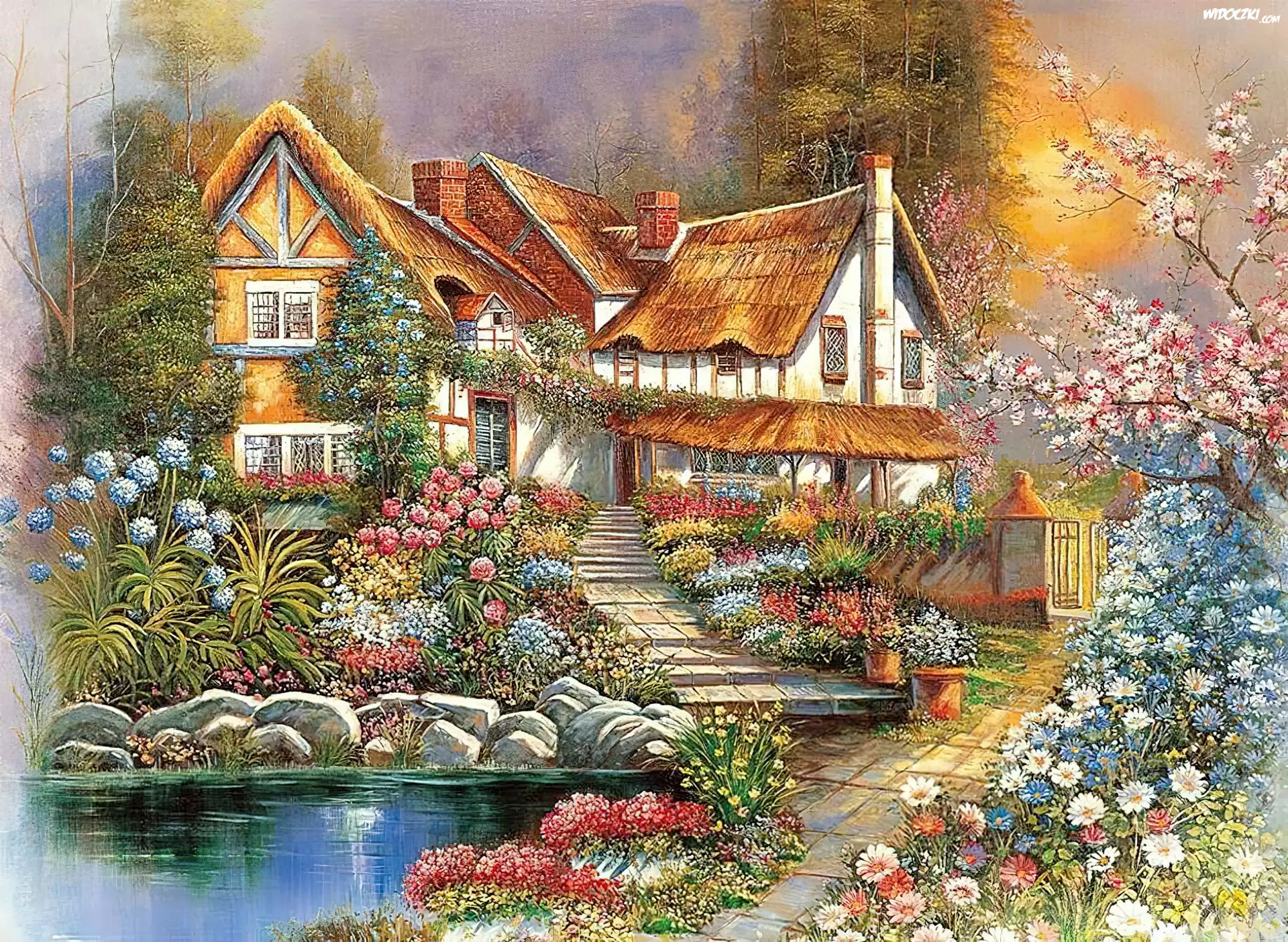 Tropiki, Palmy, Chatka Zima, Jezioro, Wyspa Zieleń, Labirynt Kwiaty, Krzewy, Ogród Góra, Jeziora Wiosna, Ogród, Kwiaty Ogród, Dwa, Łabędzie, Kwiaty Jezioro, Burza, Piorun Róże, Ogród Jezioro, Góry, El Chalten, Argentyna Odbicie, Drzew, Jezioro, Góry Góry, Jezioro, Niebo Jezioro, Góry Jezioro, Złote, Drzewa