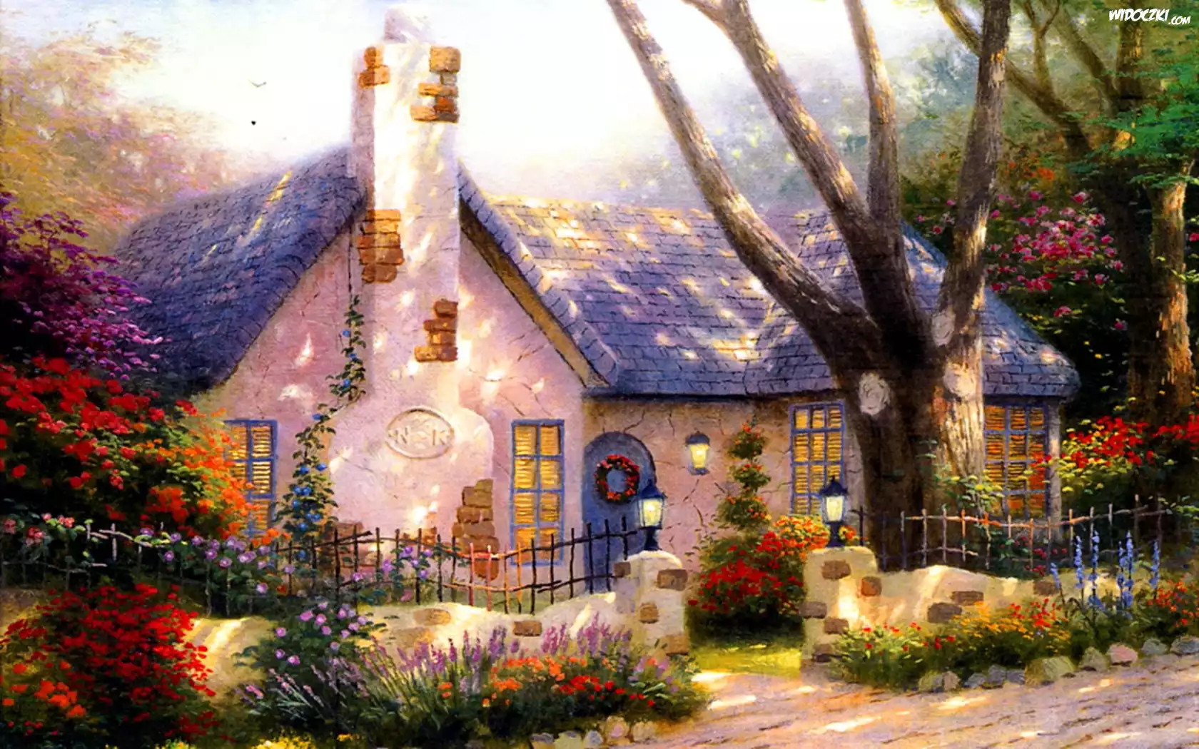 Zdj臋cia, Dom, Droga, Kwiaty, Murek