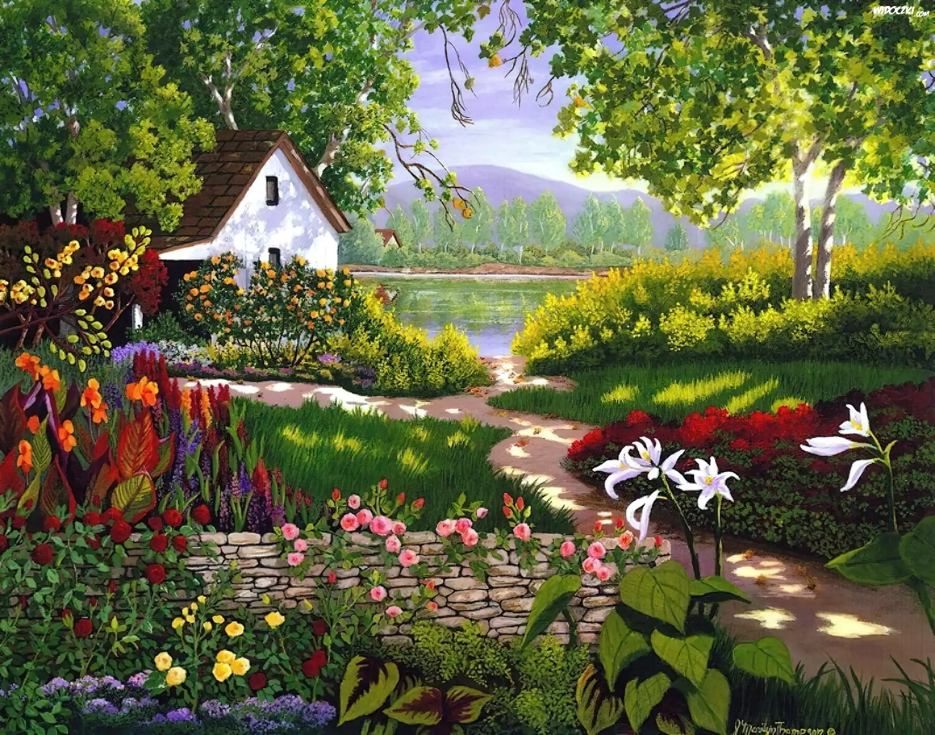 Zdjęcia, Dom, Ogród, Kwiaty, Murek