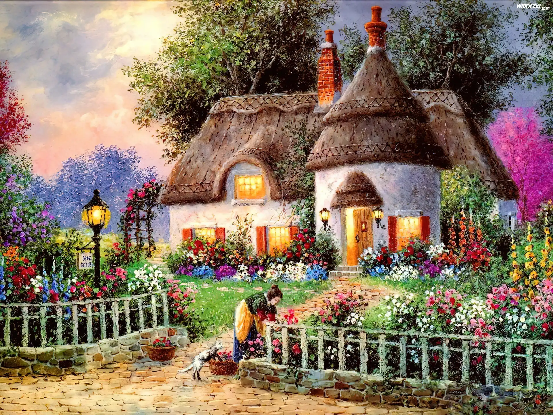 Zdjęcia, Dom, Ogród, Kwiaty, Płotek