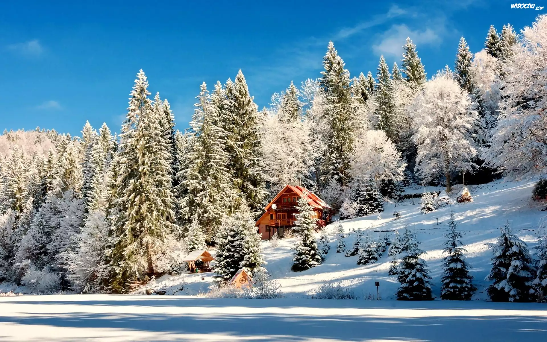 Zdjęcia, Las, Dom, Zima