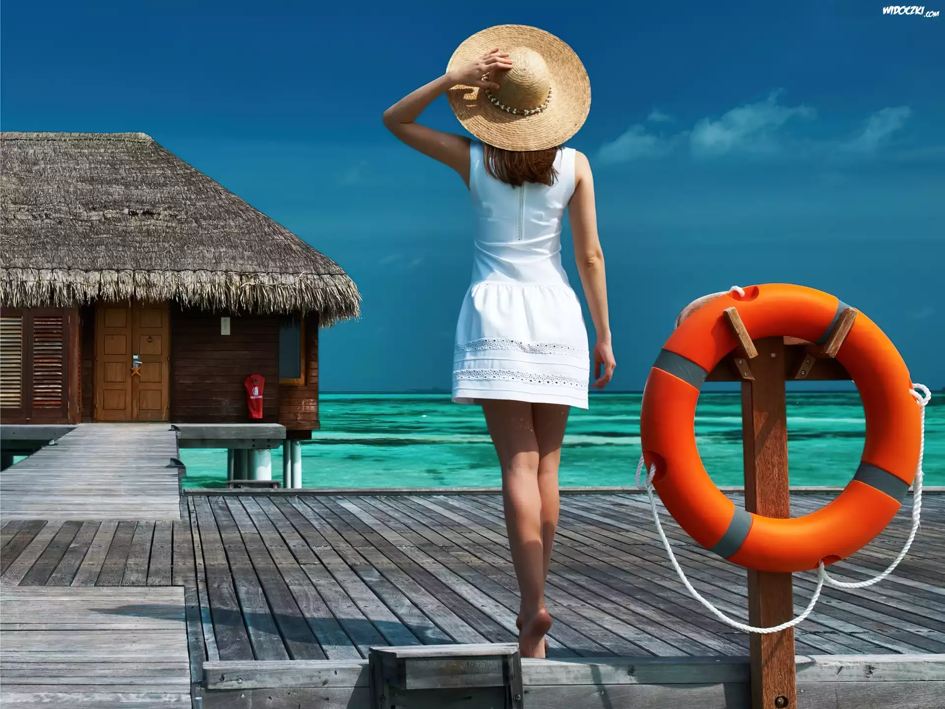 Kobieta, Dom, Na, Palach, Pomost, Morze, Tropiki Molo