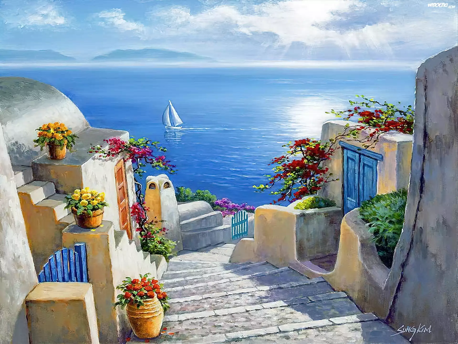 Zdjęcia, Dom, Schody, Morze, Widok