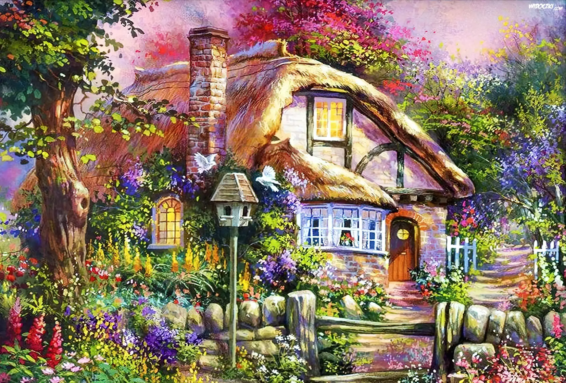 Dom, Ogród, Kwiaty, Murek, Karmik