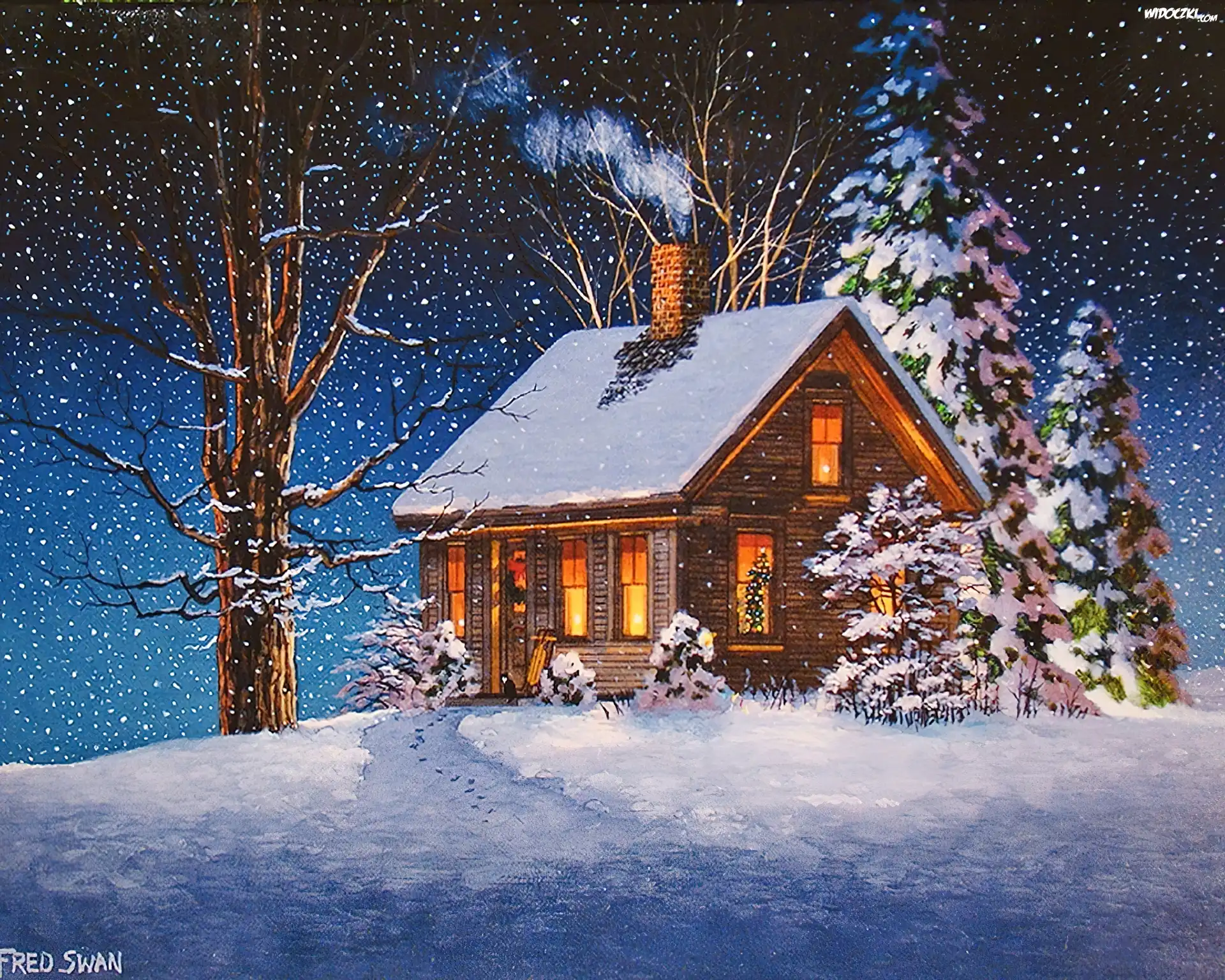 Zdjęcia, Dom, Choinka, Zima, Boże, Narodzenie, Malarstwo
