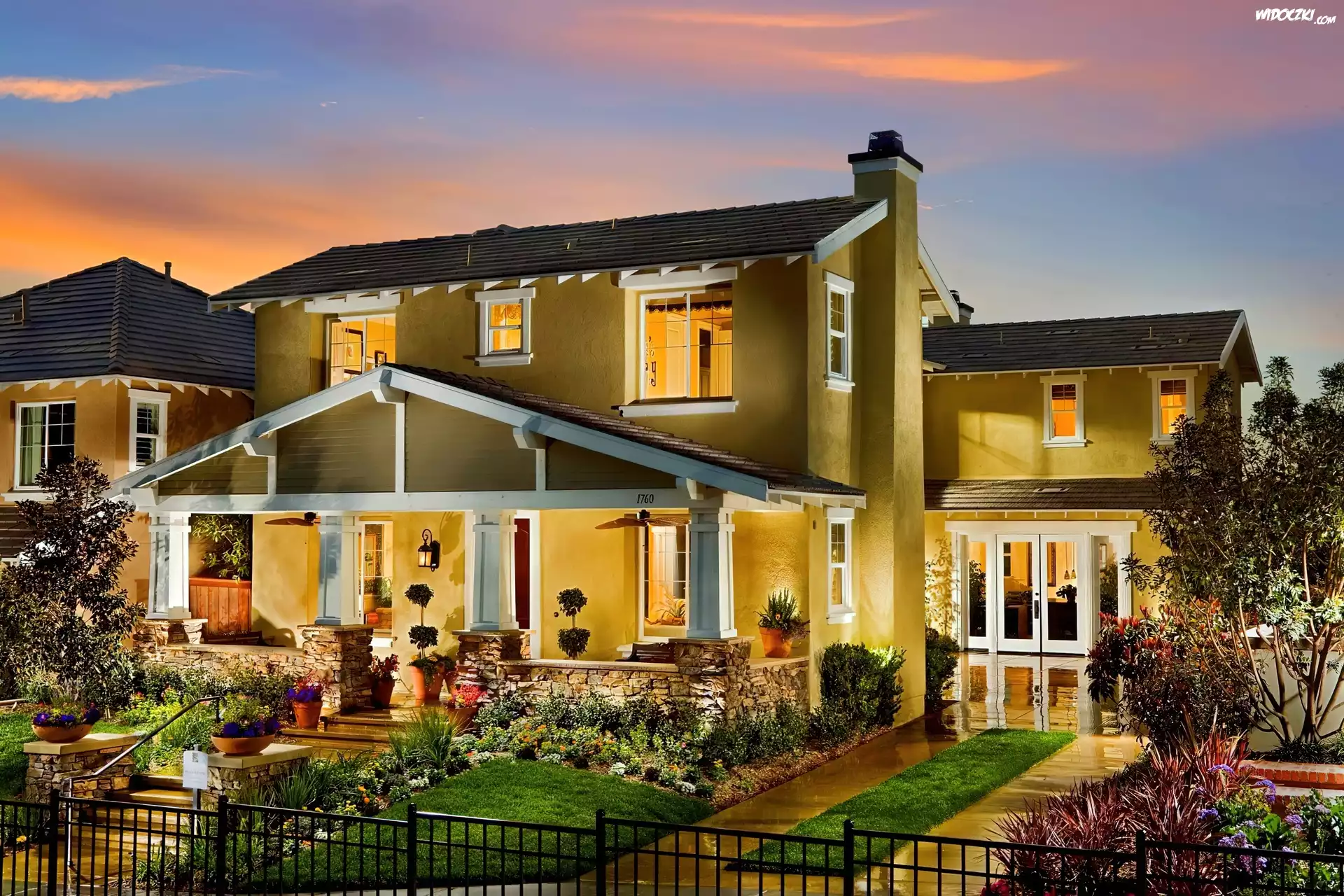 Zdjęcia, Oświetlony, Dom, Ogród