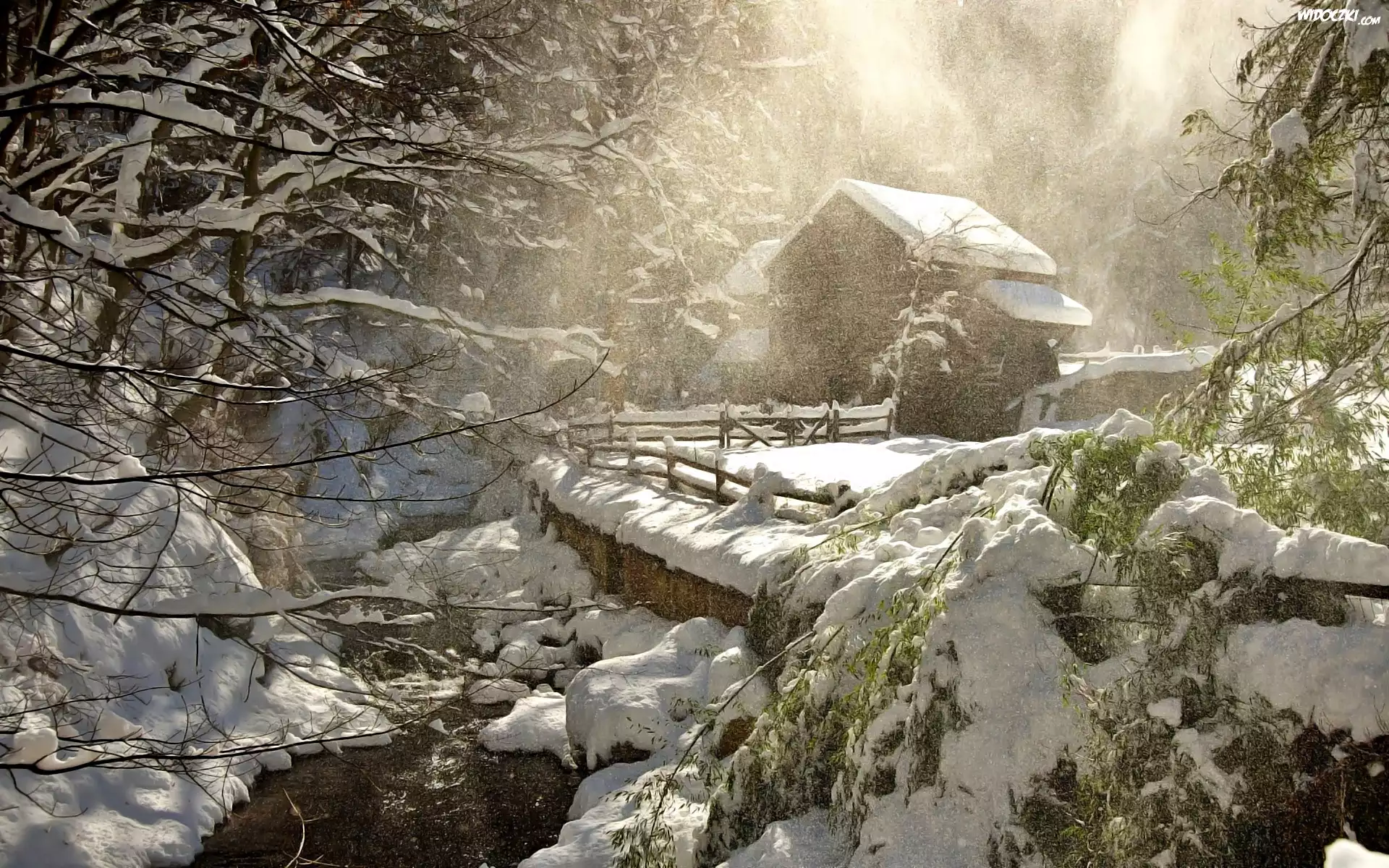 Dom, Zima, Rzeka, PadajÄ…cy, Åšnieg