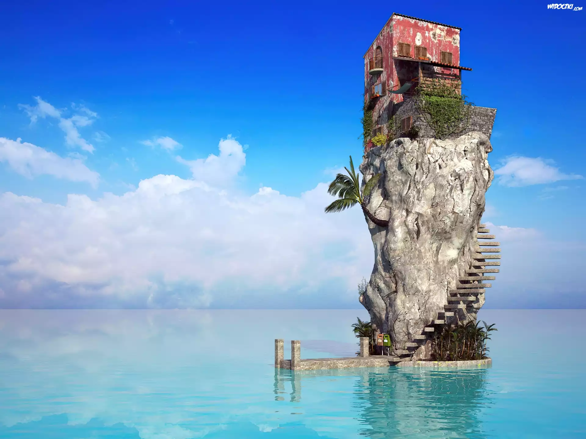 Zdjęcia, Dom, Na, Skale, Pośrodku, Morza
