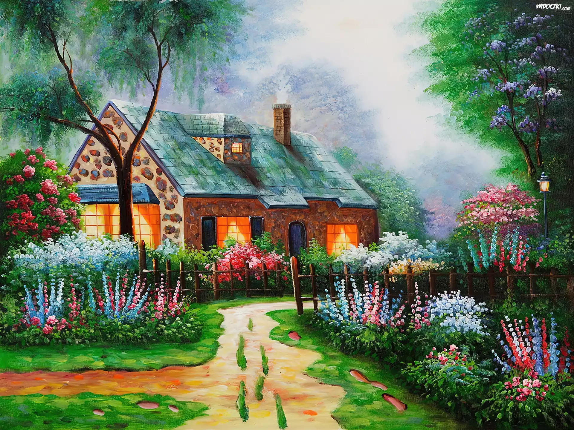 Zdjęcia, Dom, Ogród, Kwiaty, Alejka, Reprodukcje Obrazów