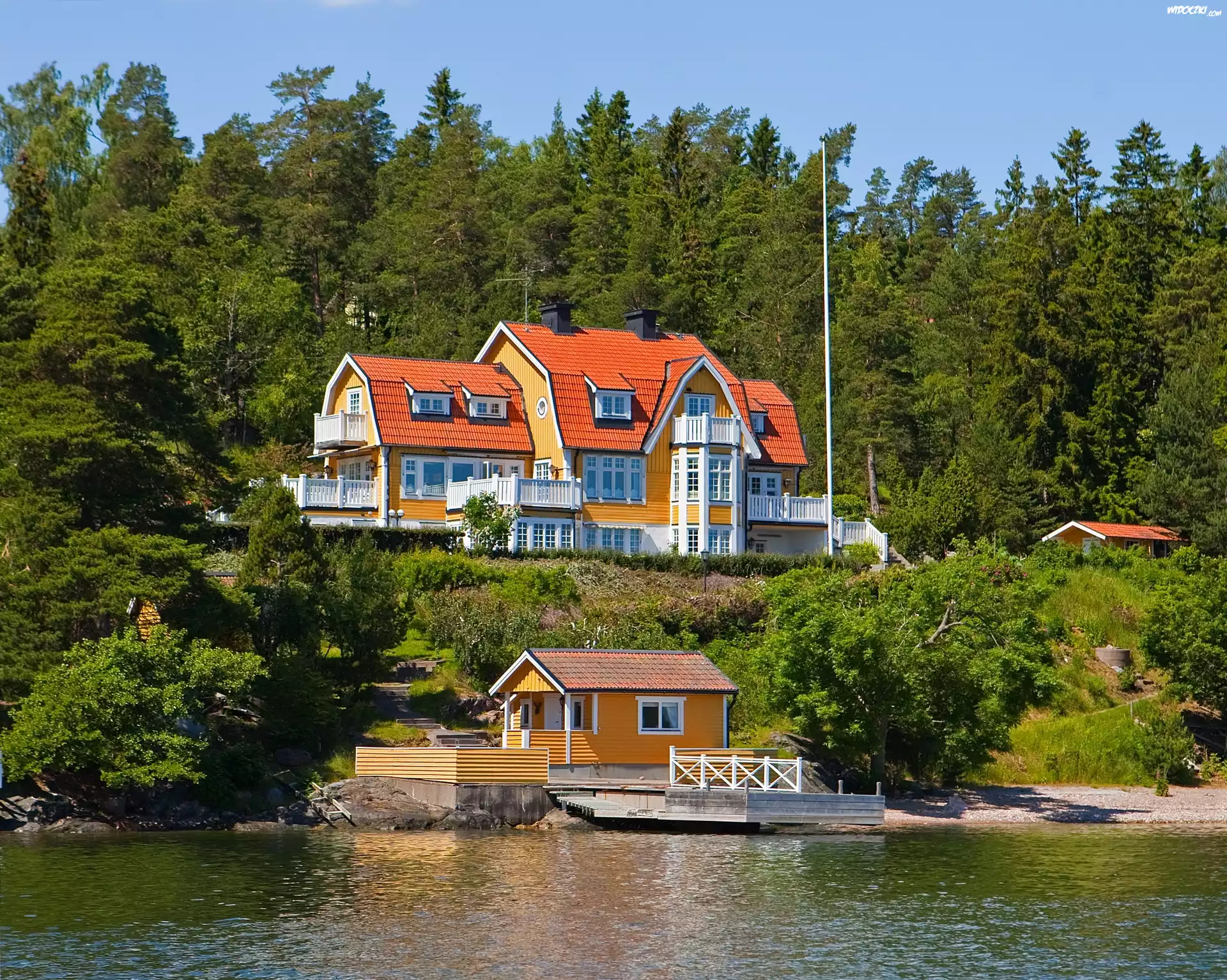 Zdjęcia, Dom, Las, Rzeka, Szwecja