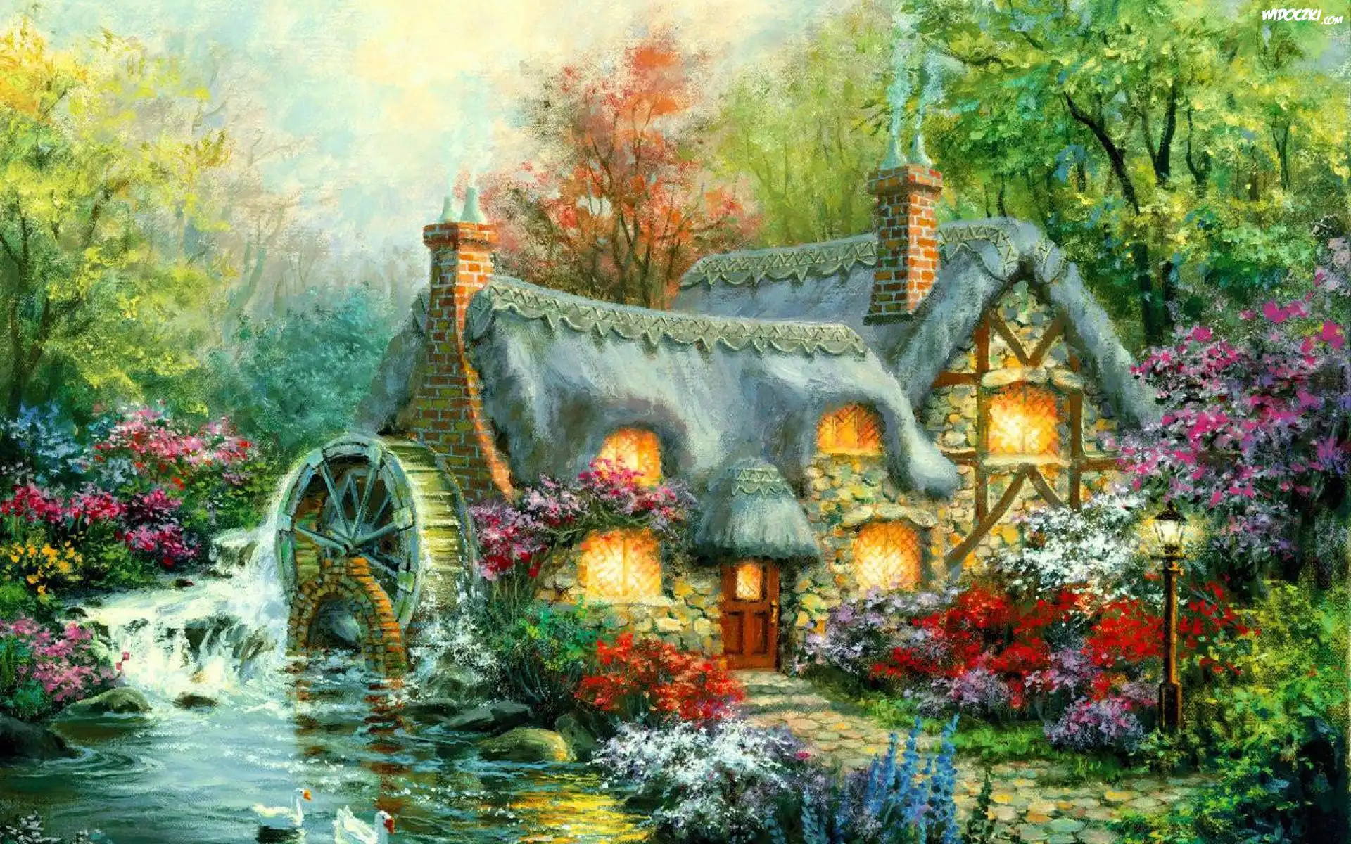 Zdjęcia, Dom, Młyn, Rzeka, Ogród