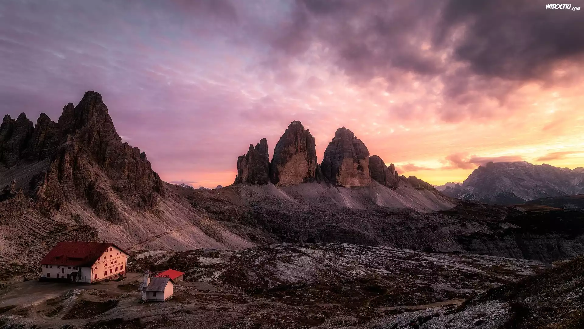 Zdjęcia, Góry, Tre Cime di Lavaredo, Dolomity, Dom, Schronisko, Auronzo, Kaplica, Włochy
