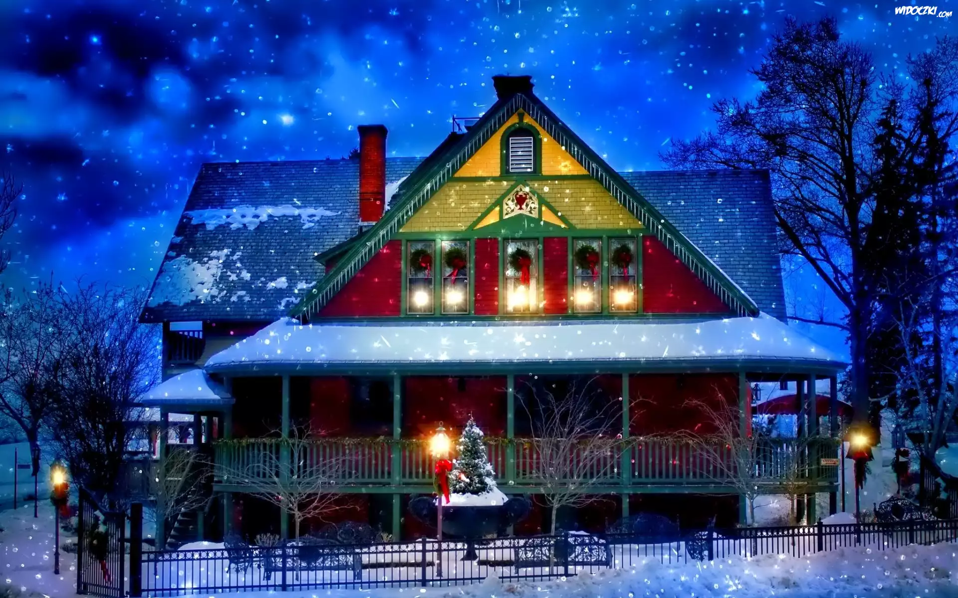 Dom, Choinka, Wystrój, Świąteczny, Zima