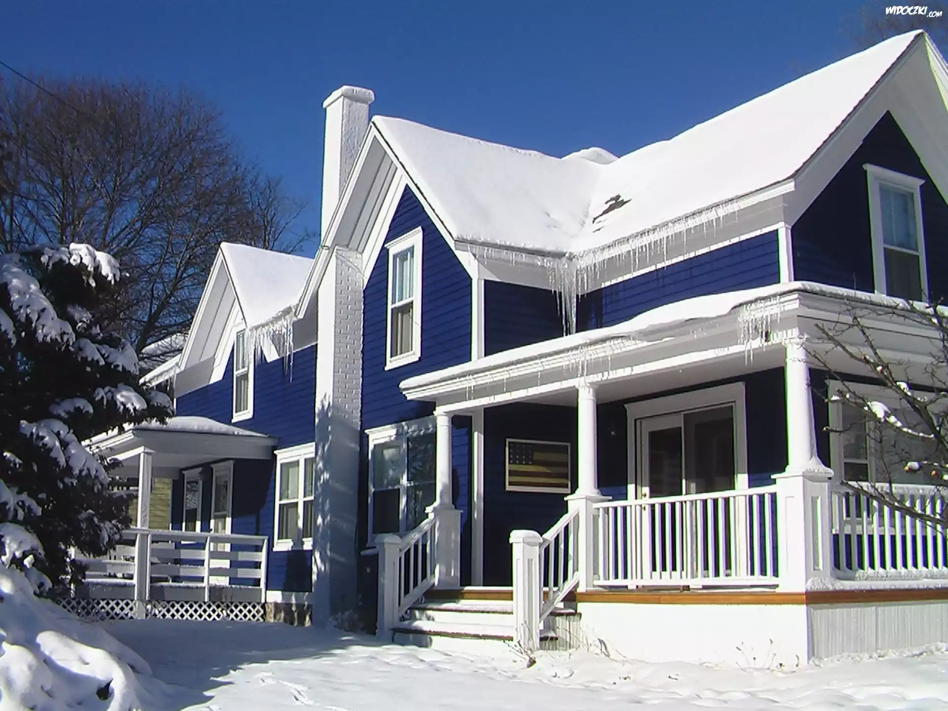 Zdjęcia, Dom, Drzewa, Przebijające, Światło, Zima