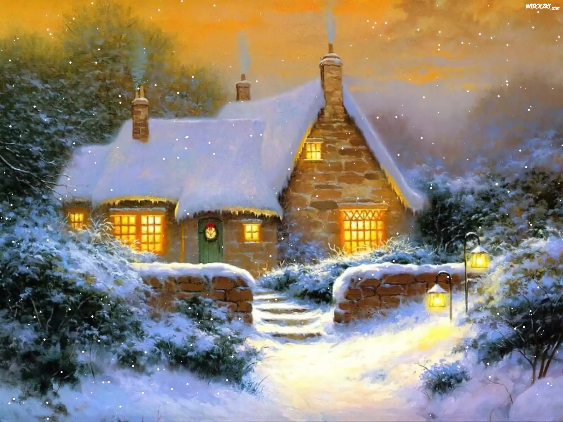 Zdj臋cia, Dom, Zimowy, Widoczek, Malarstwo