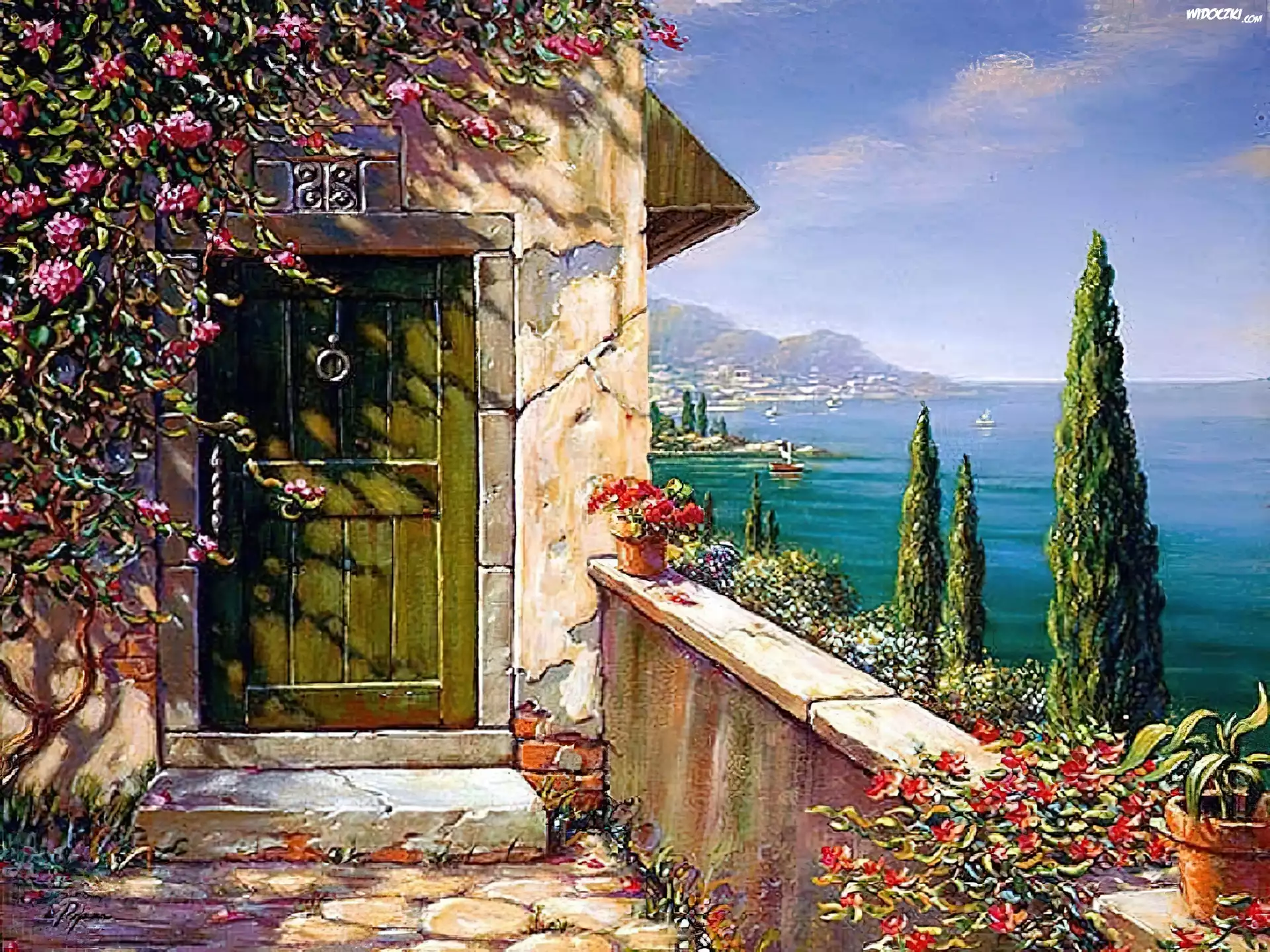 Zdj臋cia, Dom, Drzwi, Widok, Morze