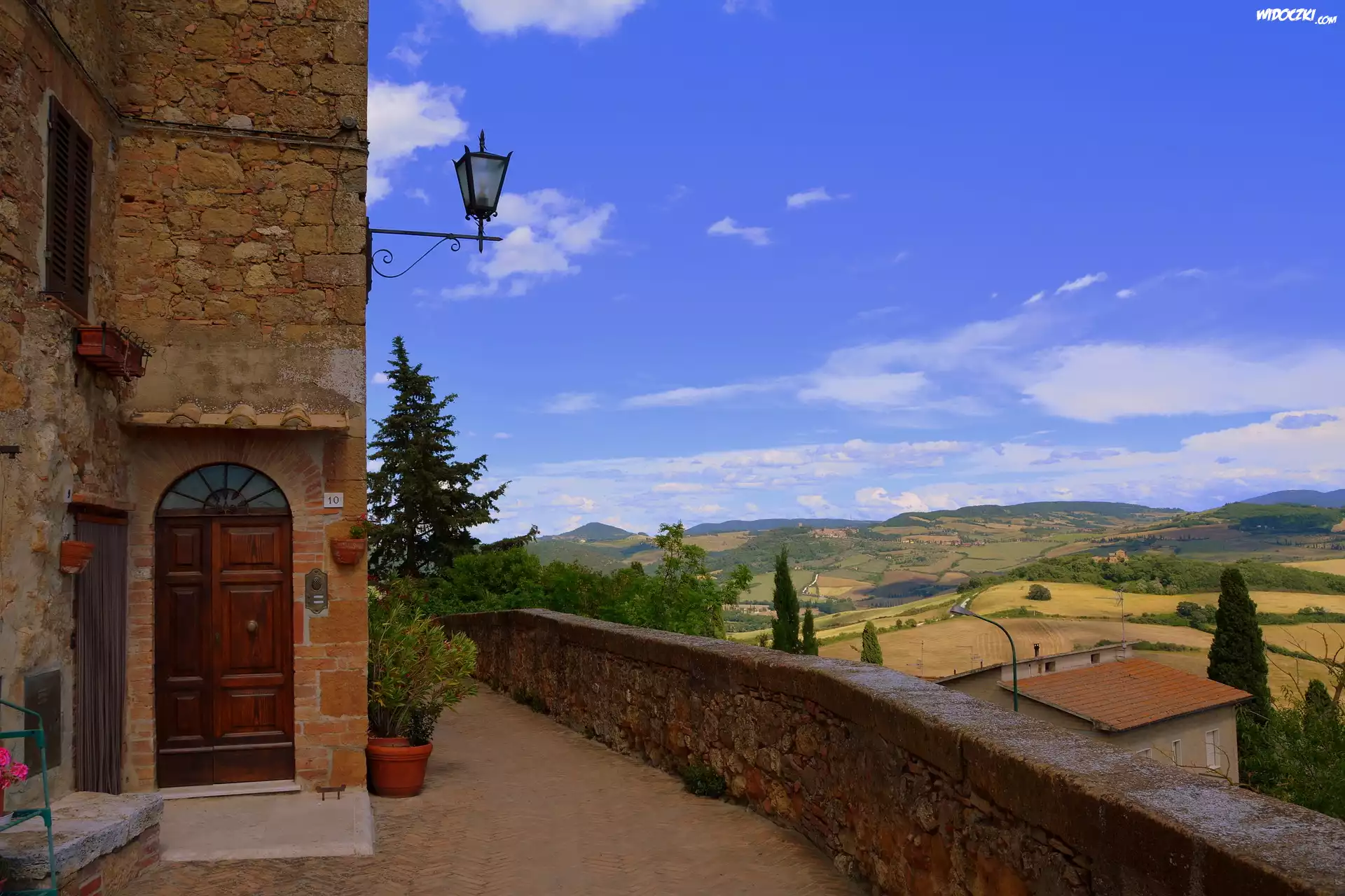 Zdjęcia, Dom, Murek, Wzgórza, Pola