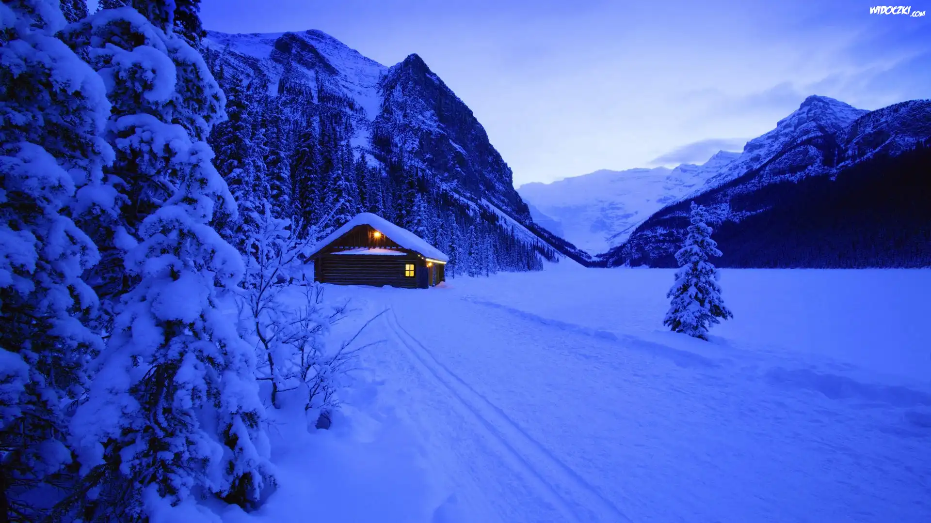 Zdjęcia, Dom, Las, Śnieg, Zaspy, Góry