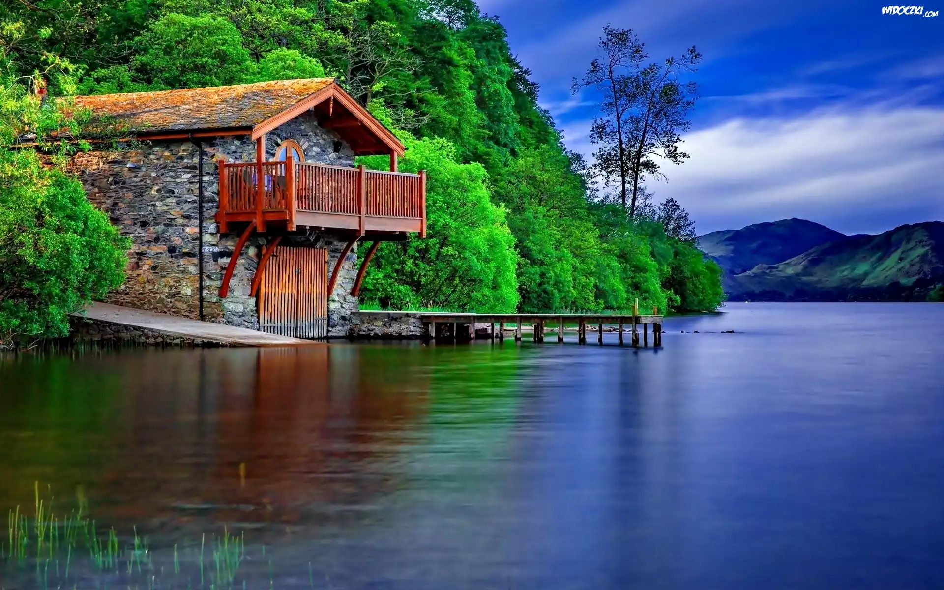 Zdjęcia, Jezioro, Domek, Drzewa