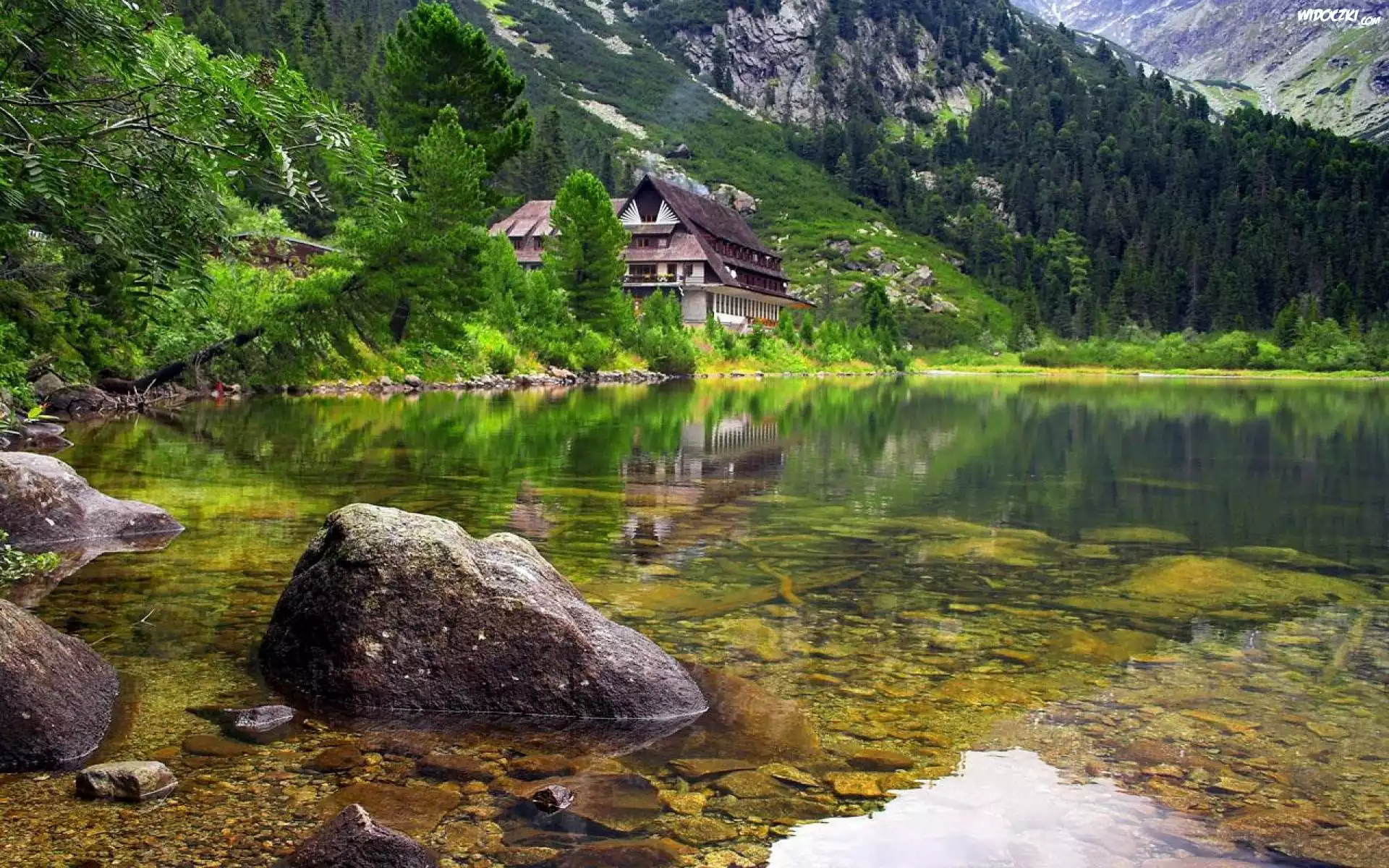 Zdjęcia, Domek, Góry, Las, Jezioro