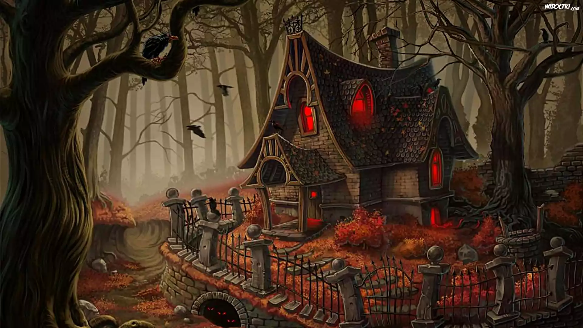 Domek, Ogrodzenie, Las, Noc