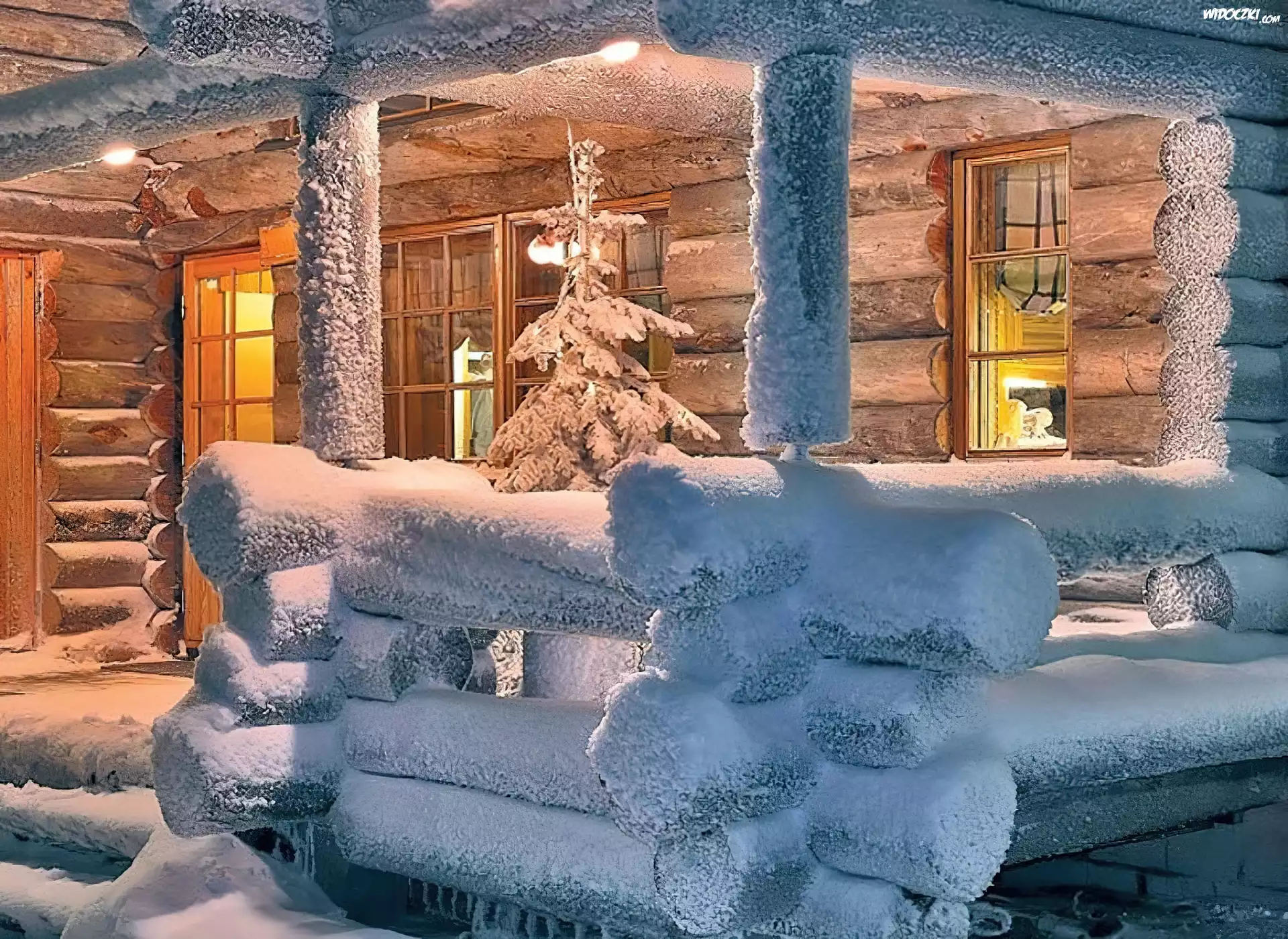Zdjęcia, Domek, Choinka, Śnieg, Zima