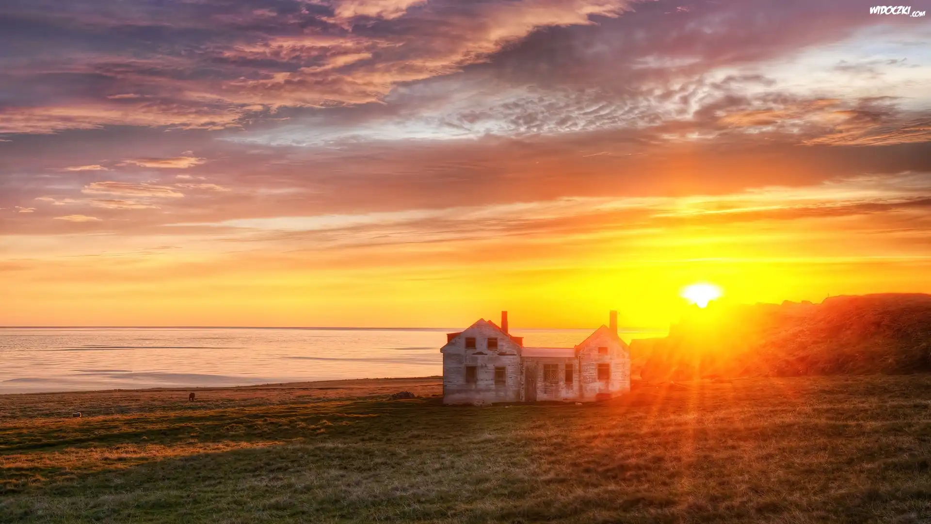Zdjęcia, Domek, Pastwisko, Zachód, Słońca