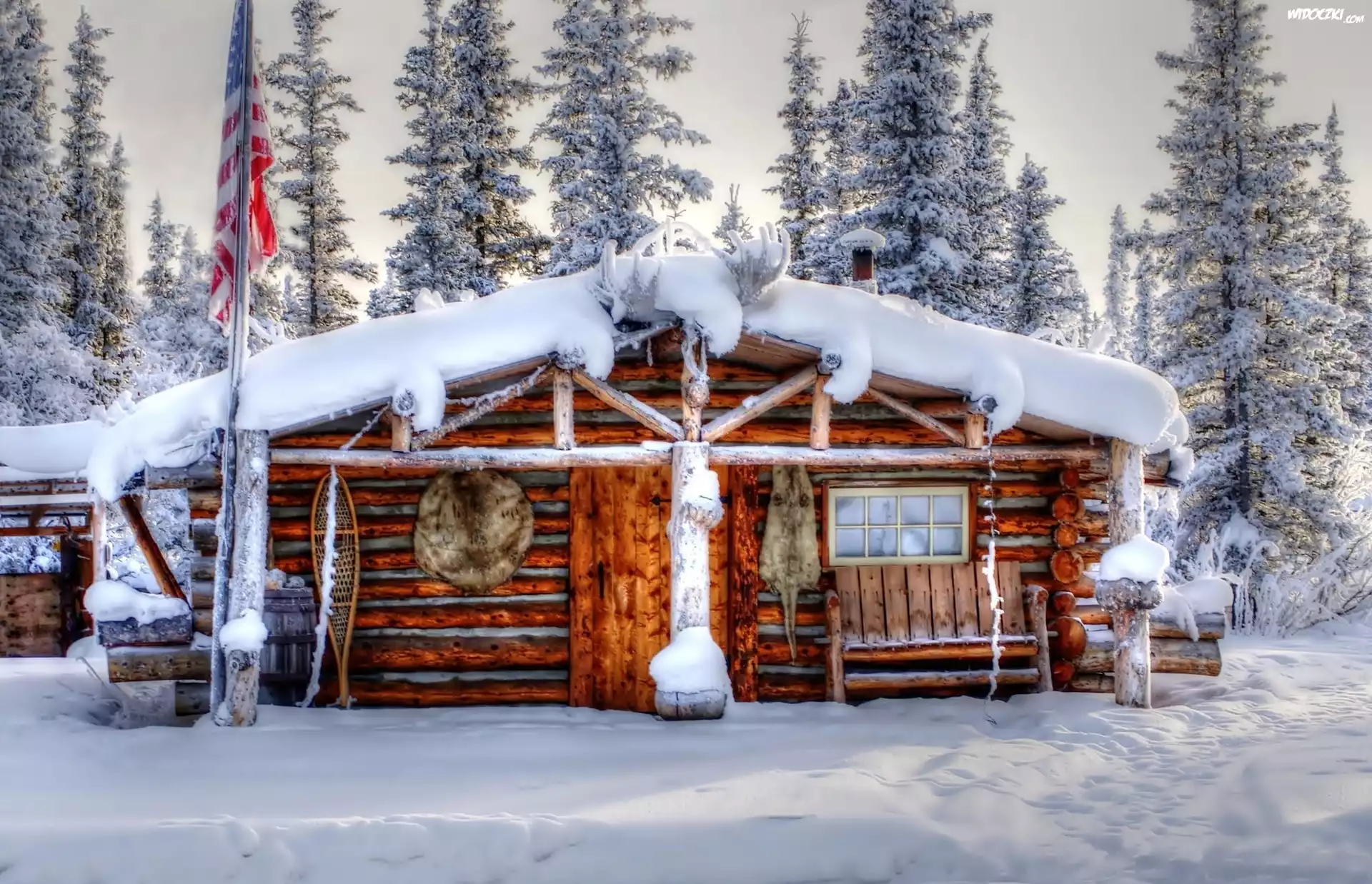 Zdjęcia, Domek, Myśliwski, Zima, Drzewa