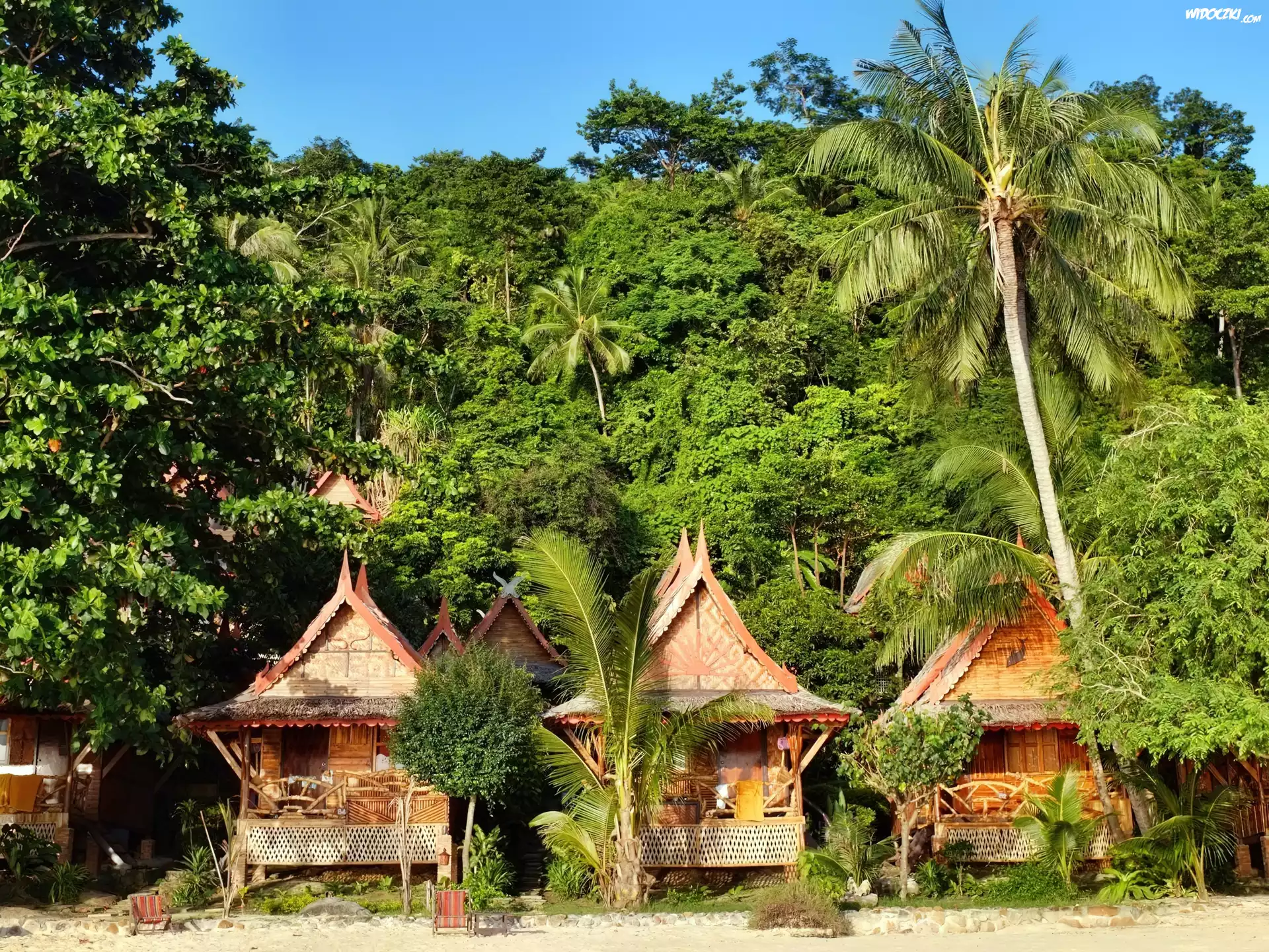 Zdjęcia, Domki, Na, Plaży, Palmy, Tropik