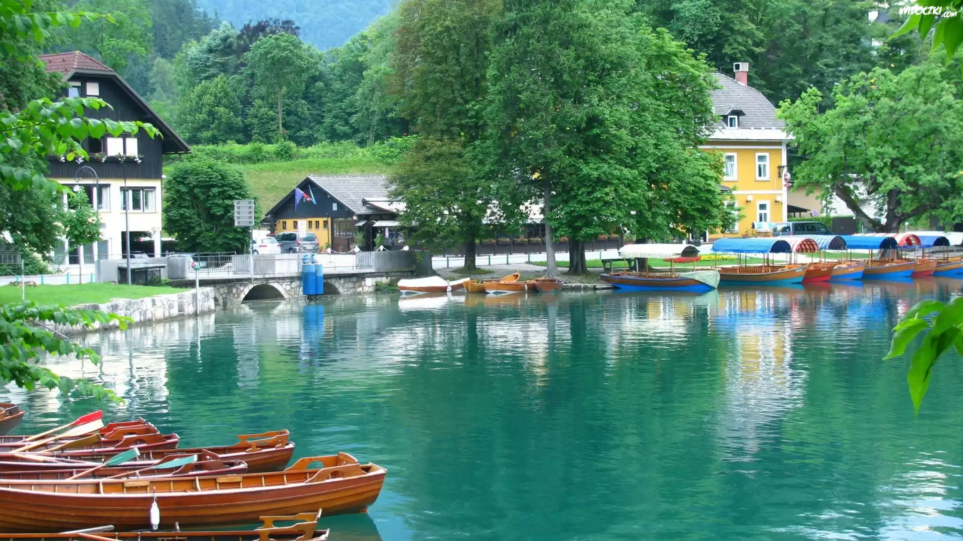 Zdjęcia, Domy, Łódki, Jezioro, Bled, Słowenia