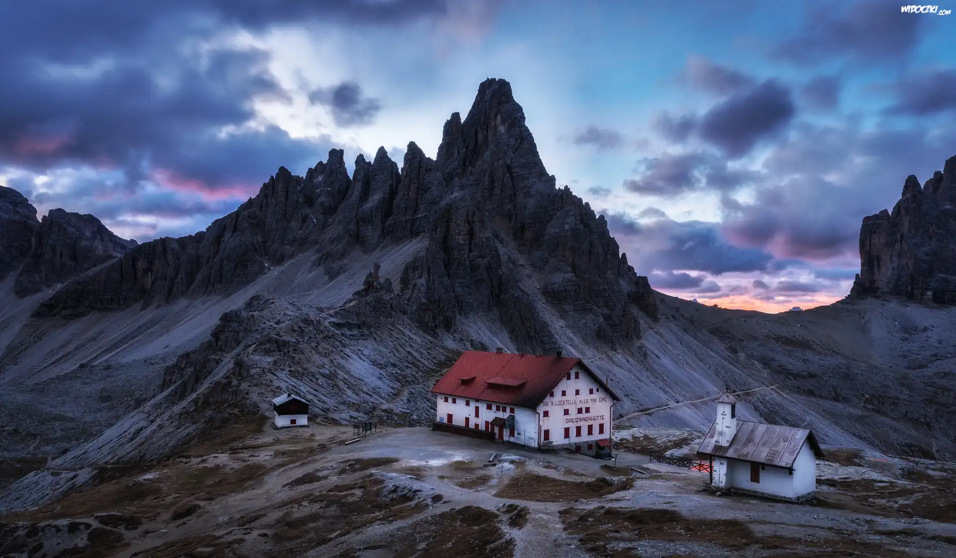Zdjęcia, Góry, Włochy, Dolomity, Masyw Tre Cime di Lavaredo, Domy