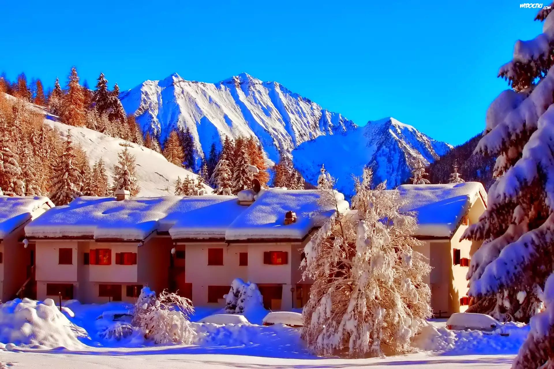 Zdjęcia, Domy, Góry, Drzewa, Zima