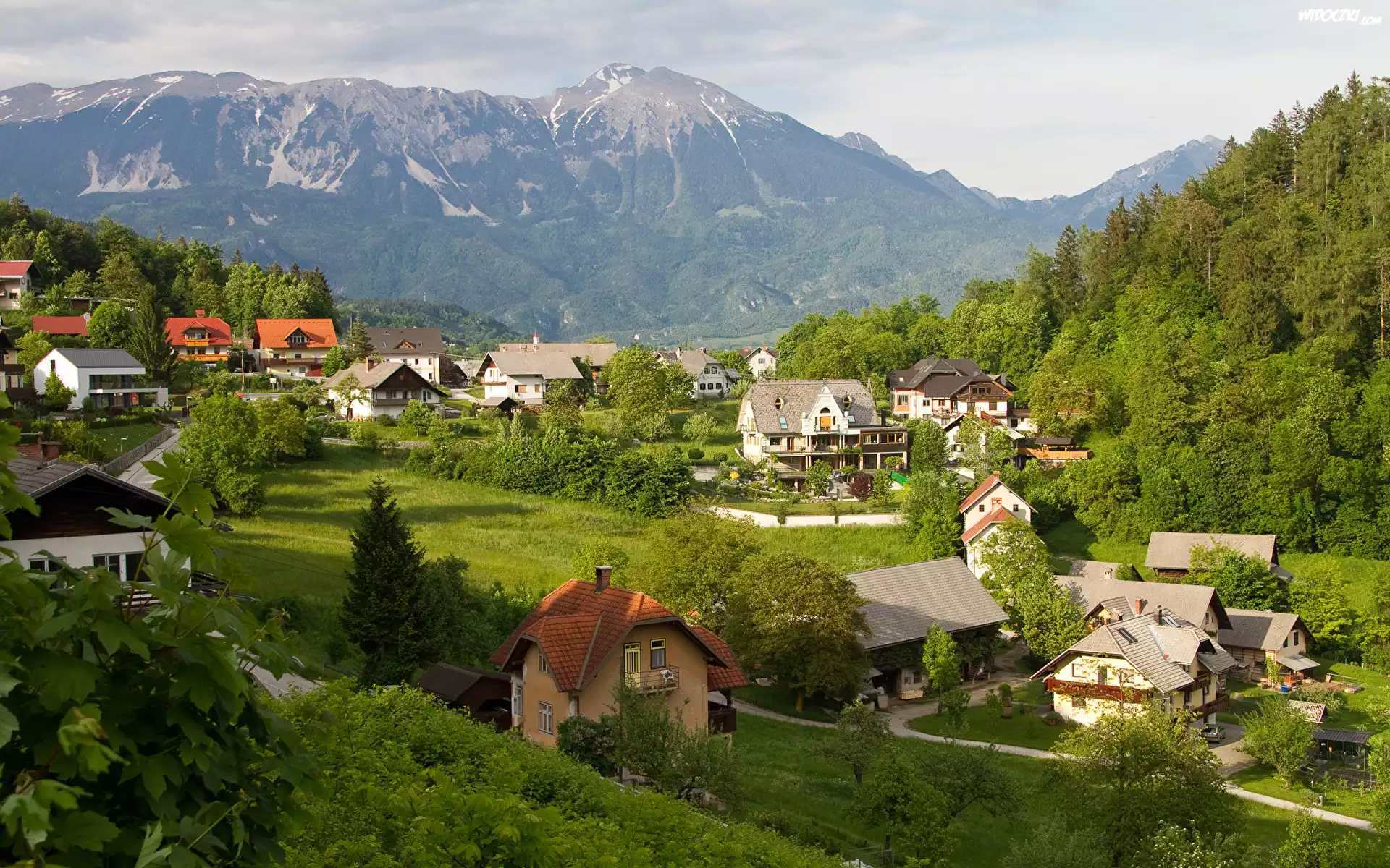Zdjęcia, Domy, Góry, Lasy, Drzewa, Rośliny