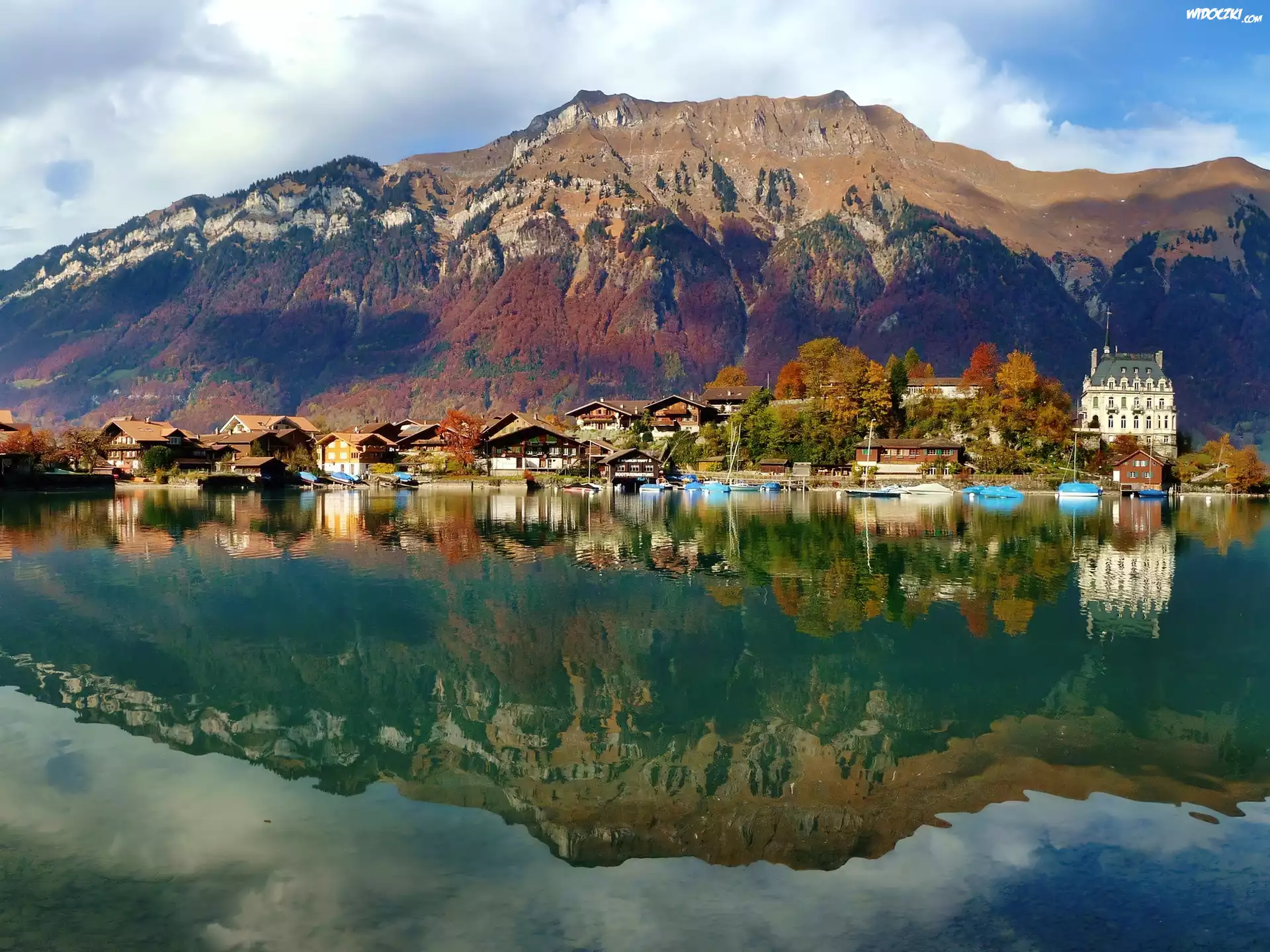 Zdjęcia, Domy, Nad, Jeziorem, Góry, Szwajcaria