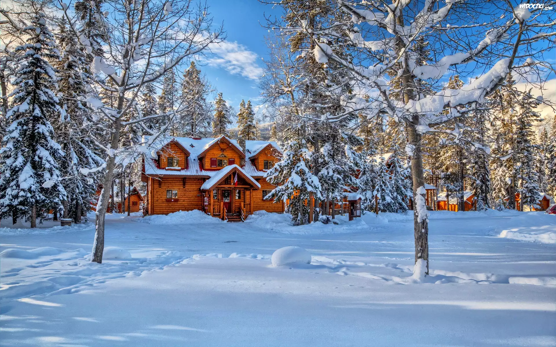 Zdjęcia, Domy, Las, Góry, Zima