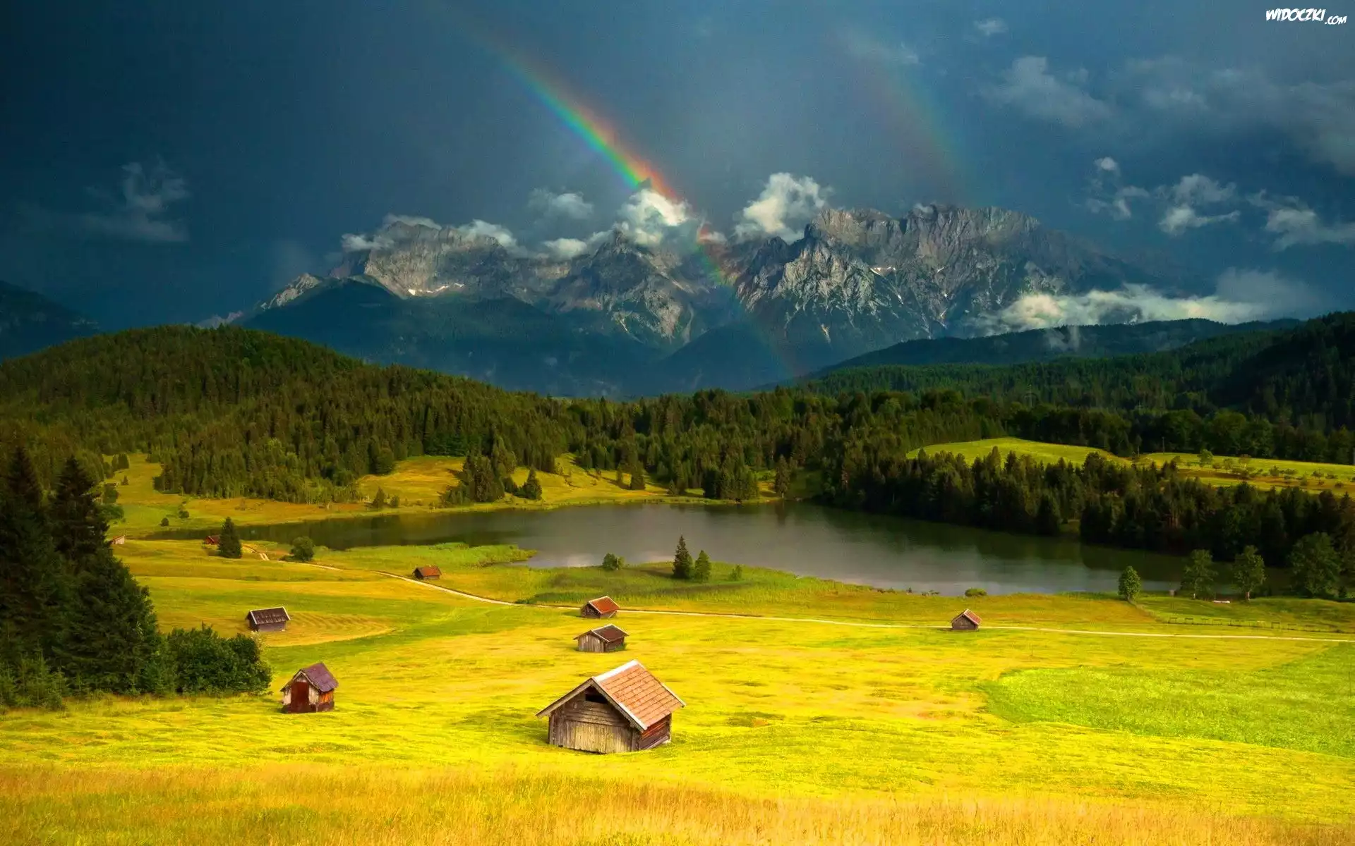 Zdjęcia, Domy, Pola, Lasy, Góry, Tęcza