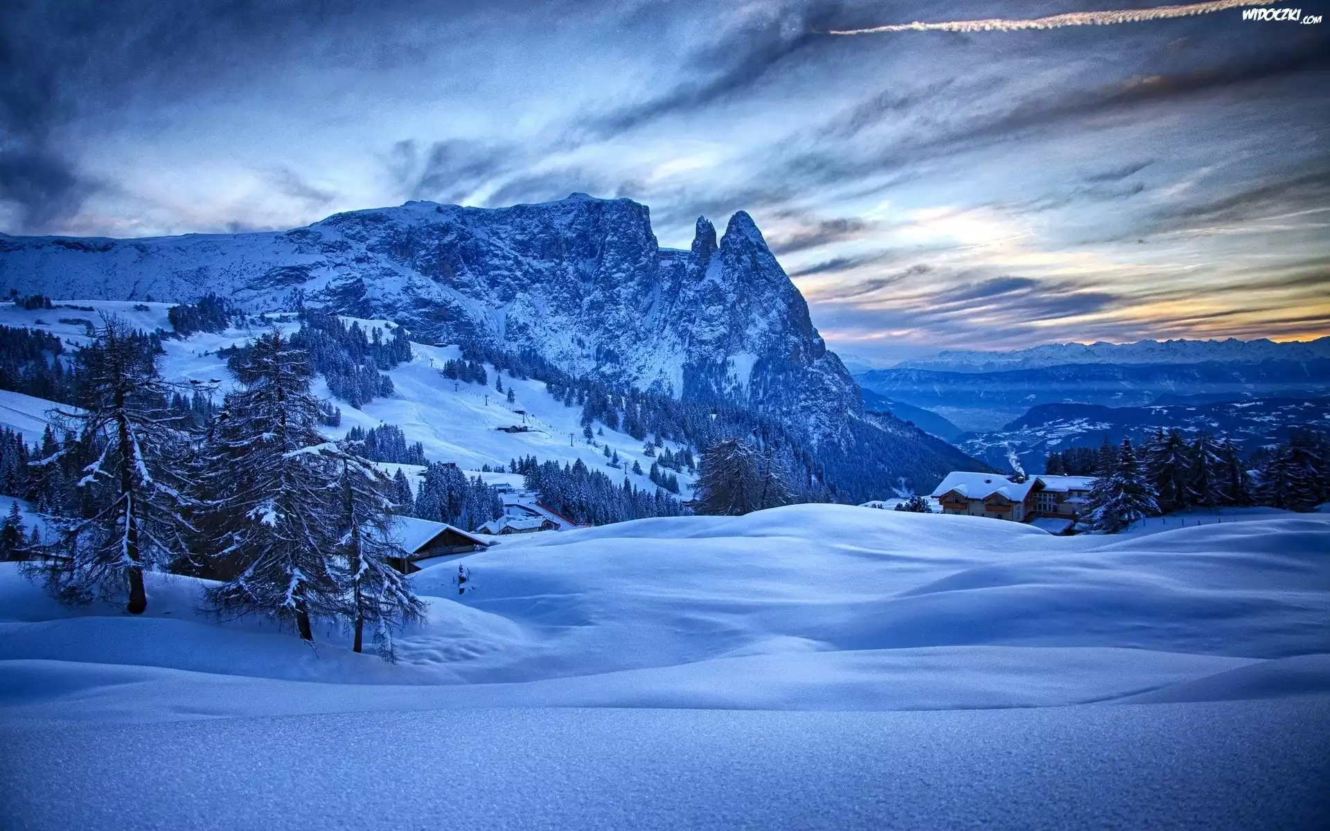 Zdjęcia, Domy, Lasy, Góry, Zima