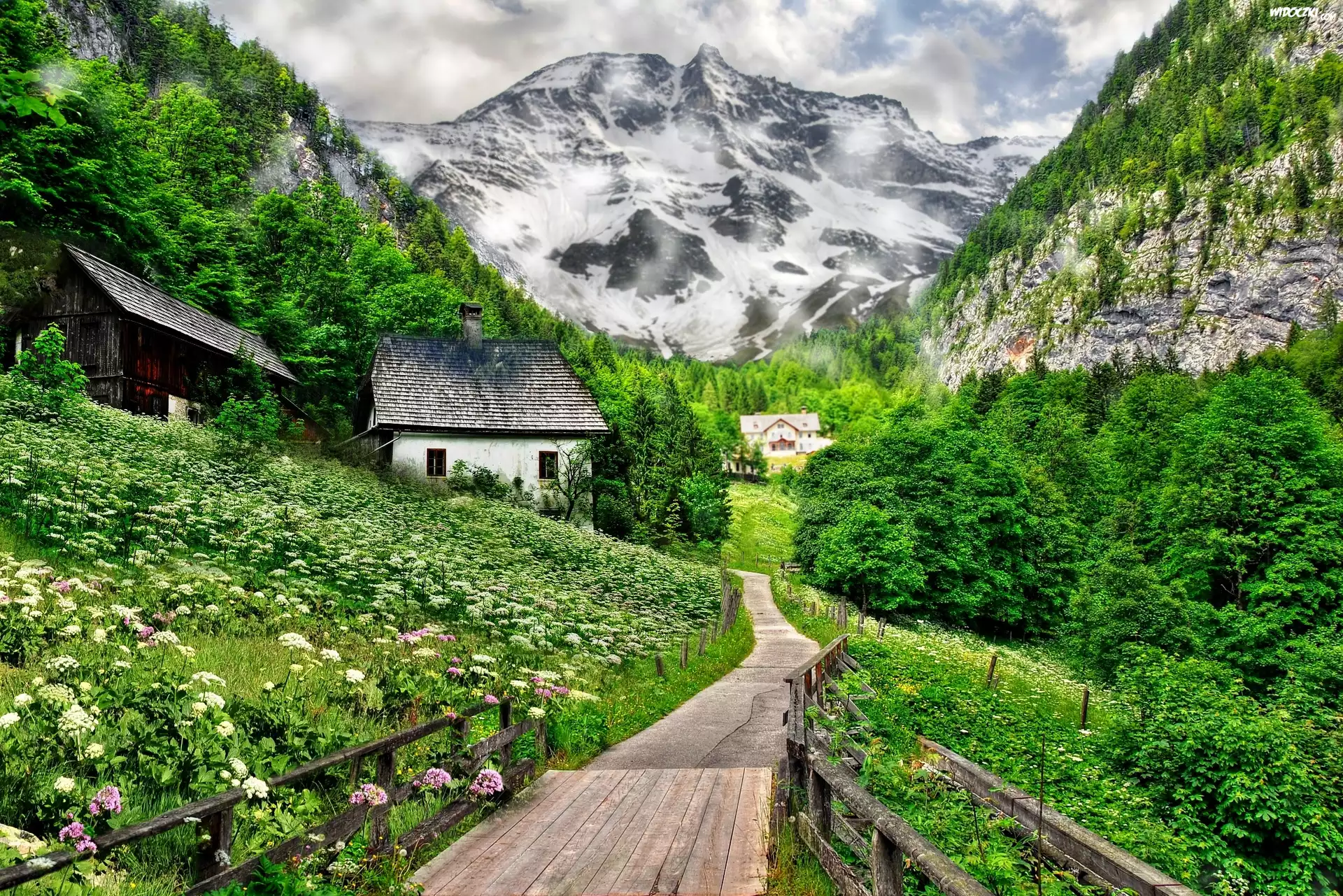 Zdjęcia, Domy, Góry, Las, Droga