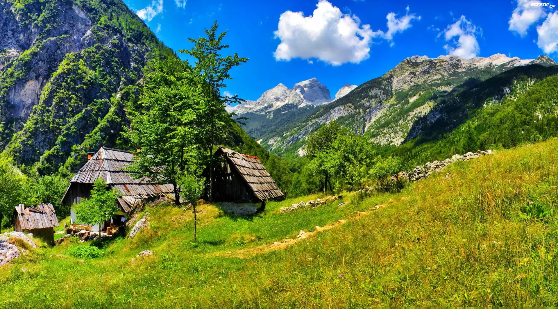 Zdjęcia, Domy, Góry, Lasy, Łąka