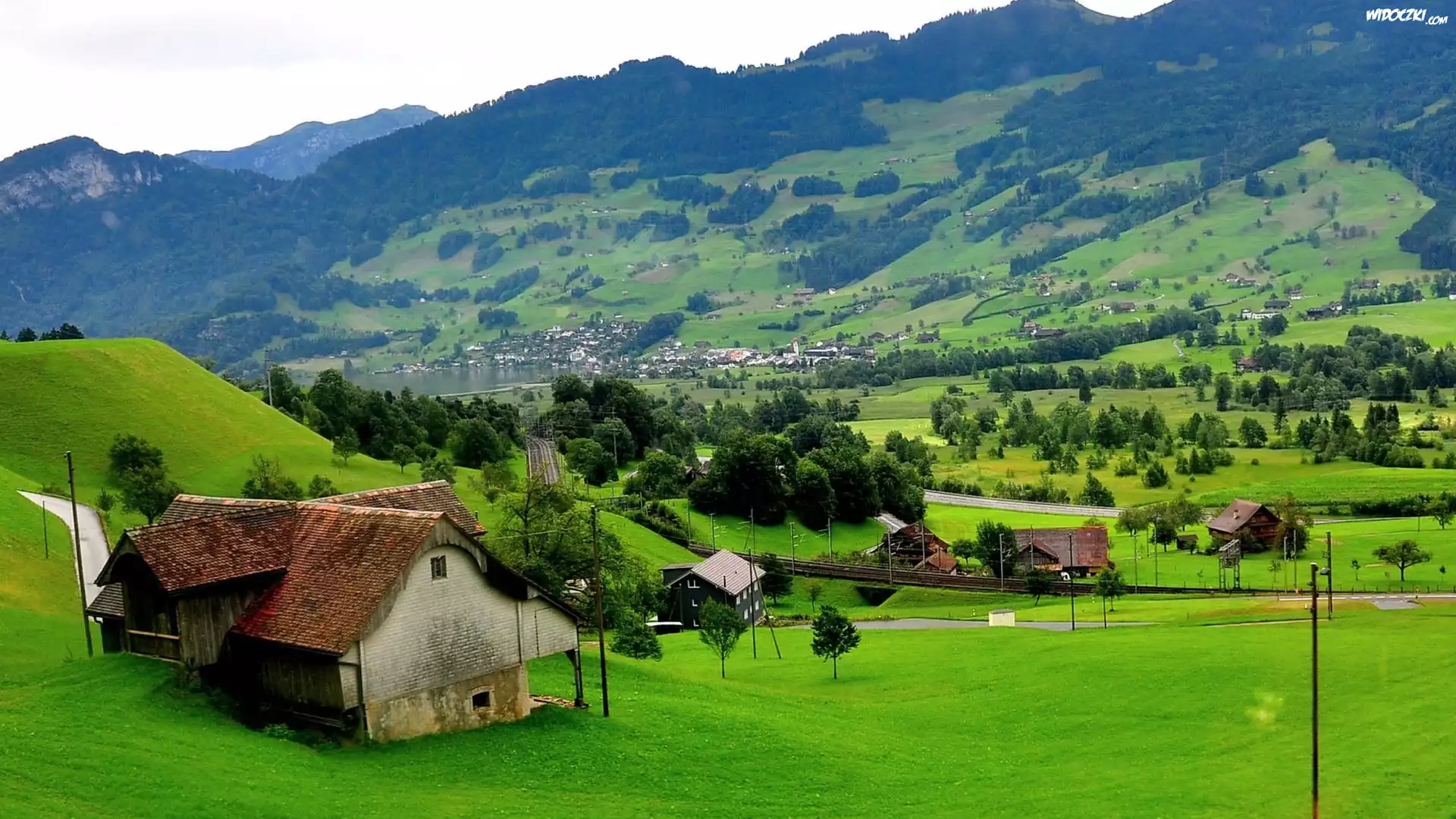 Zdjęcia, Domy, Góry, Lasy, Szwajcaria