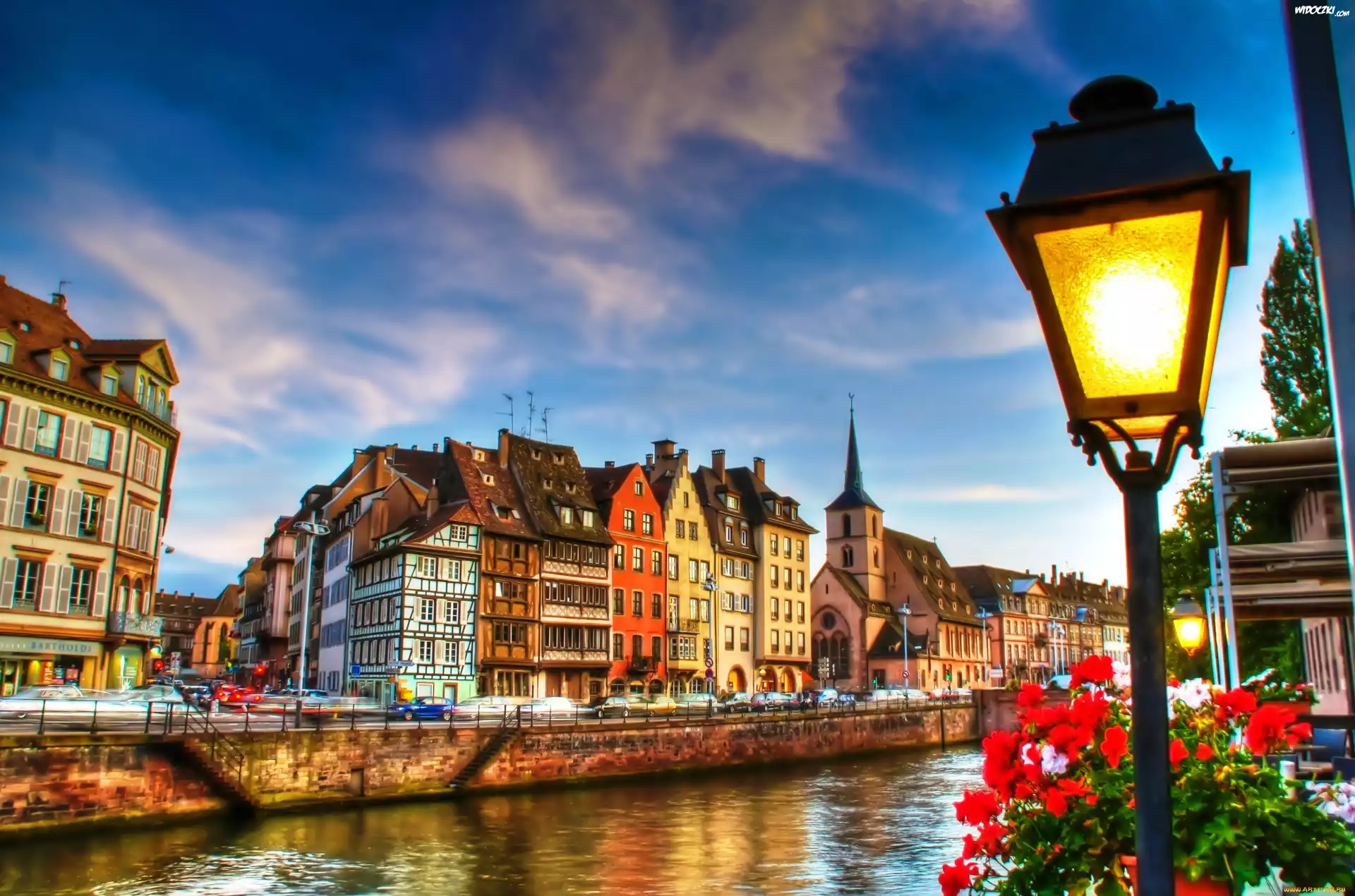 Zdjęcia, Domy, Rzeka, Latarnia, Strasburg