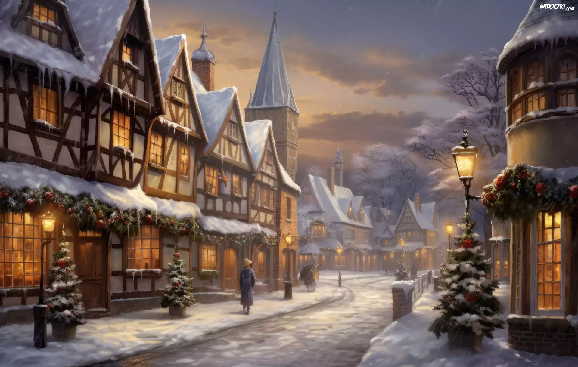 Zima, Domy, Latarnie, Boże Narodzenie