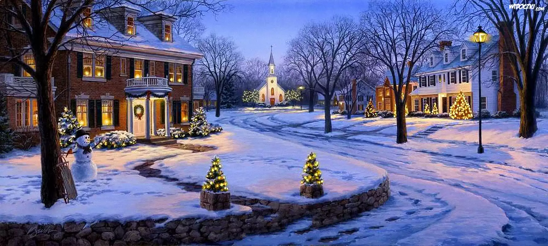 Zdjęcia, Domy, Ulica, Zima, Boże, Narodzenie, Malarstwo