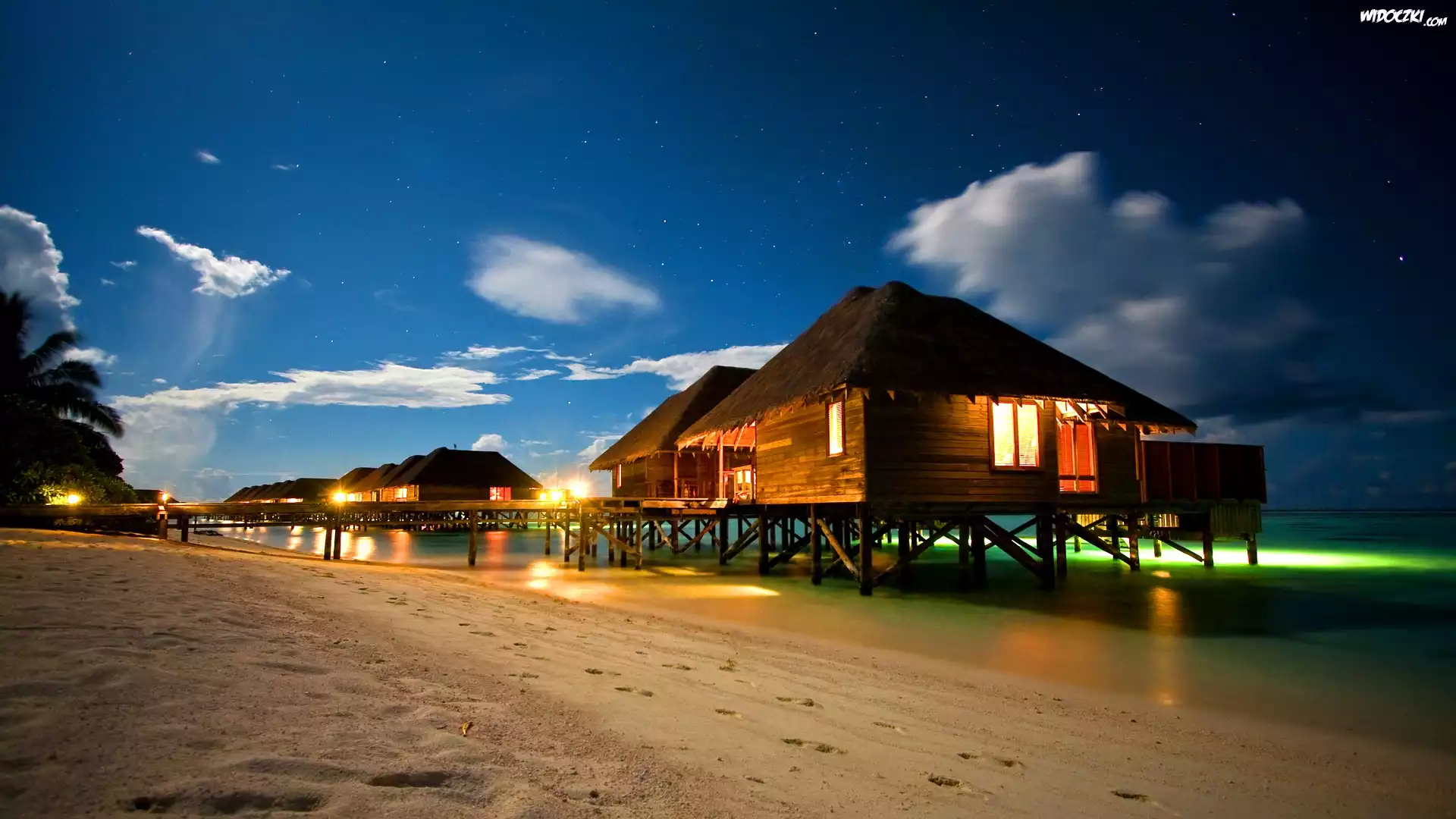 Zdjęcia, Domy, Na, Palach, Plaża, Morze
